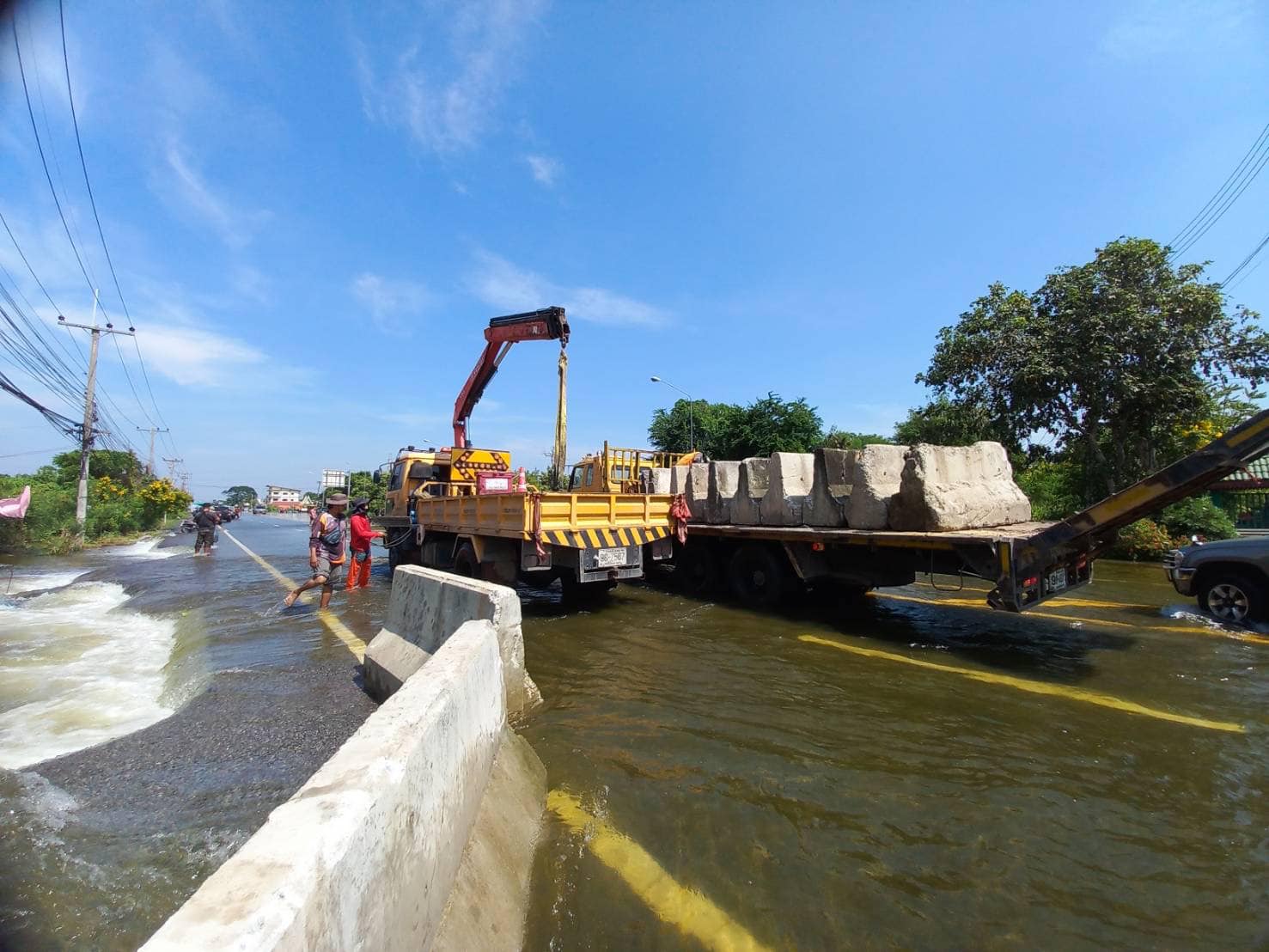 กรมทางหลวงวางแนวแบริเออร์กันอันตรายพร้อมจัดรถรับ - ส่ง ผู้ประสบภัยในพื้นที่ จ.อ่างทอง บรรเทาความเดือดร้อนประชาชนตามนโยบาย รวค.