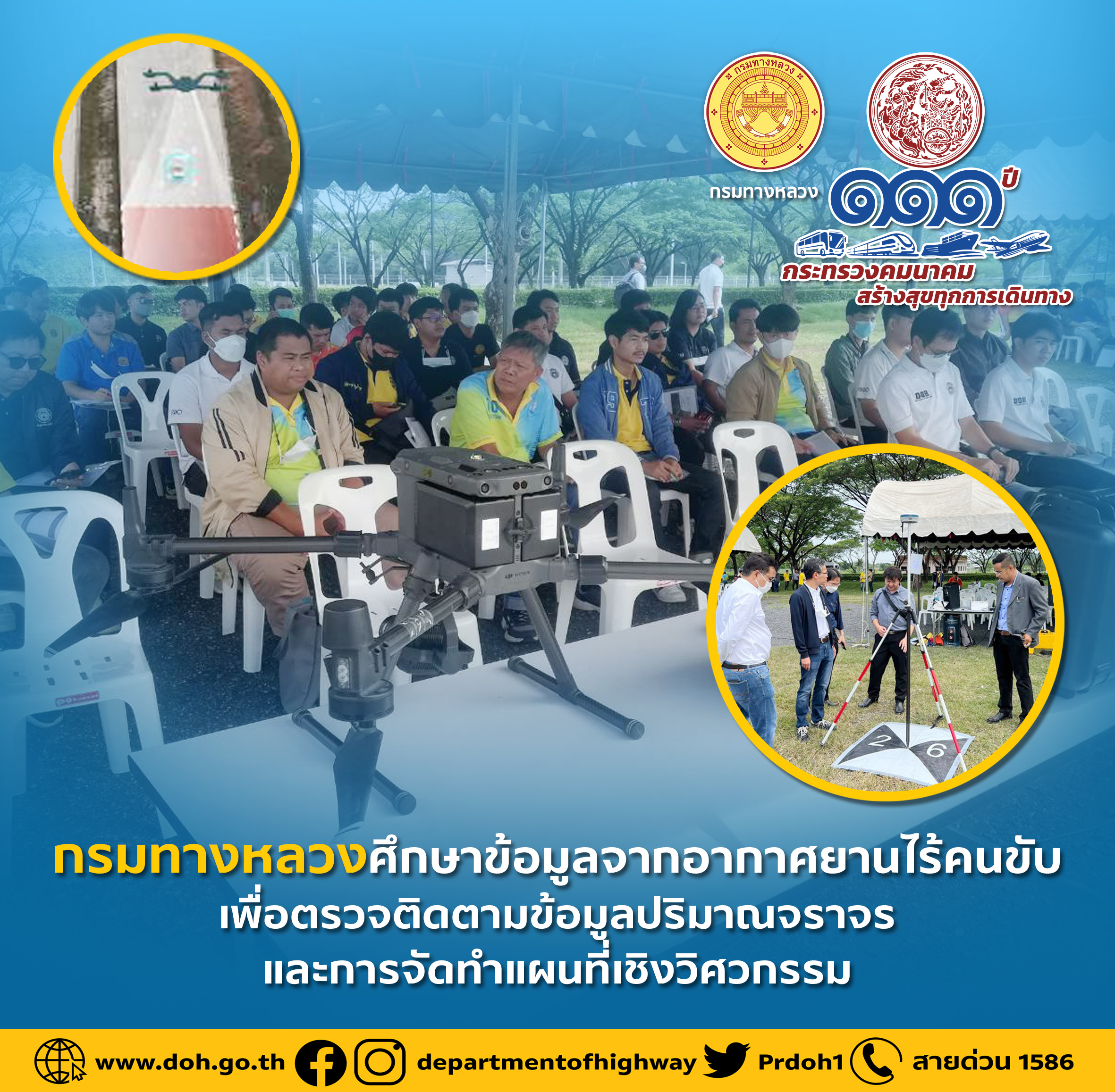 กรมทางหลวงศึกษาข้อมูลจากอากาศยานไร้คนขับ (โดรน) เพื่อตรวจติดตามข้อมูลปริมาณจราจรและการจัดทำแผนที่เชิงวิศวกรรม