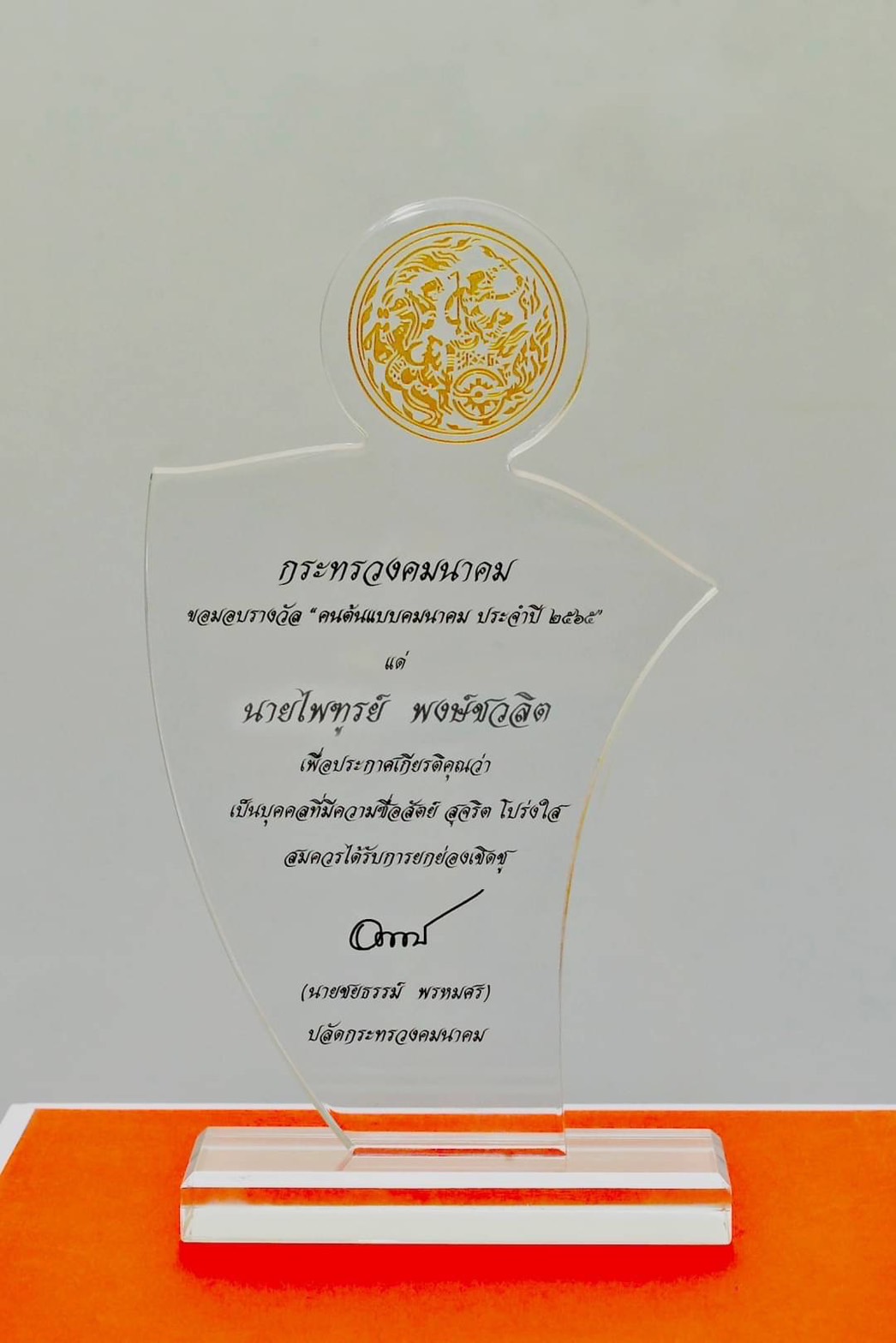 กรมทางหลวง รับมอบรางวัล “คนต้นแบบคมนาคม ประจำปี 2565 – 2566” เพื่อเชิดชูเกียรติแก่บุคลากรของหน่วยงานในสังกัดกระทรวงคมนาคม