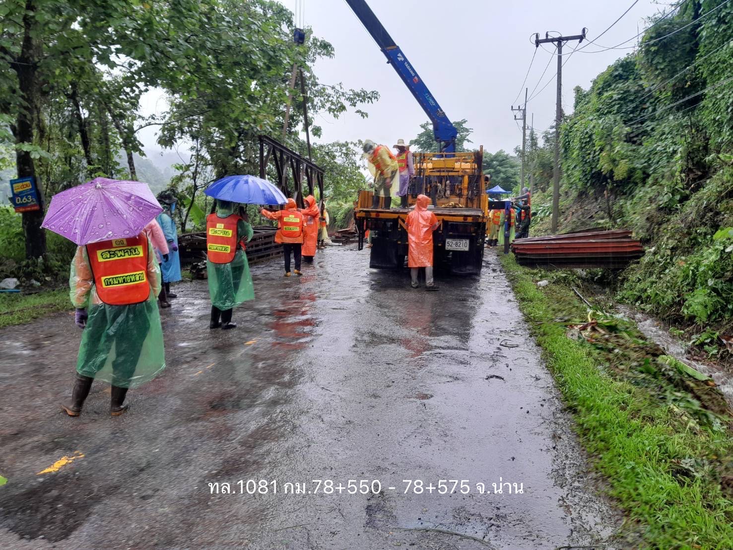 กรมทางหลวงรายงานสถานการณ์น้ำท่วม / ดินสไลด์บนทางหลวง พื้นที่ จ.น่าน และ จ.ตาก ผ่านไม่ได้ 7 แห่ง เร่งทอดสะพานเบลี่ย์ให้ประชาชนสัญจรได้อย่างปกติ