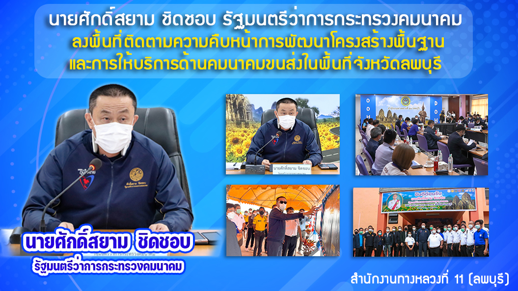นายศักดิ์สยาม ชิดชอบ รัฐมนตรีว่าการกระทรวงคมนาคม ลงพื้นที่ติดตามความคืบหน้าการพัฒนาโครงสร้างพื้นฐานและการให้บริการด้านคมนาคมขนส่งในพื้นที่จังหวัดลพบุรี