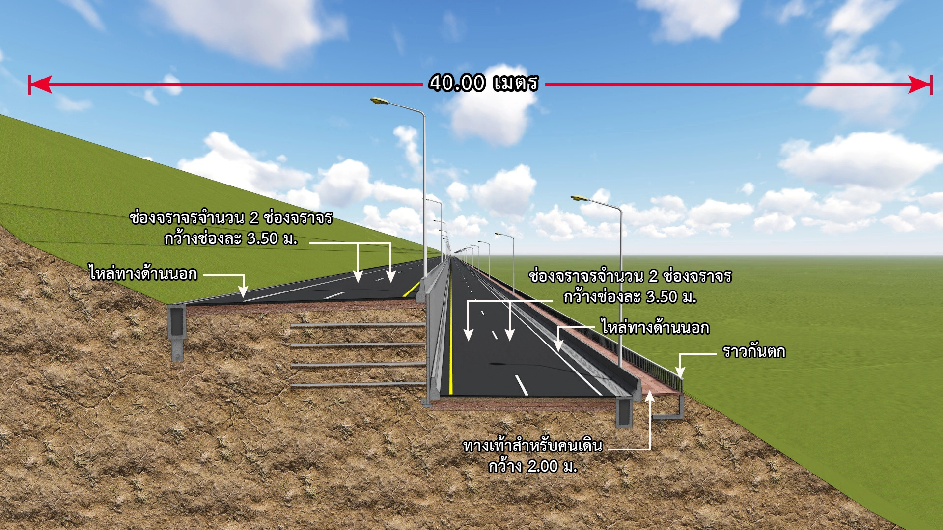 3. รูปแบบจุดกลับรถใต้สะพานข้าม กม.801+599.000 คลองเขาหลัก ความสูงช่องลอด 2 เมตร นอกจากนี้บริเวณบ้านบางหลาโอนได้ออกแบบทางลอดคนเดินให้นักท่องเที่ยว