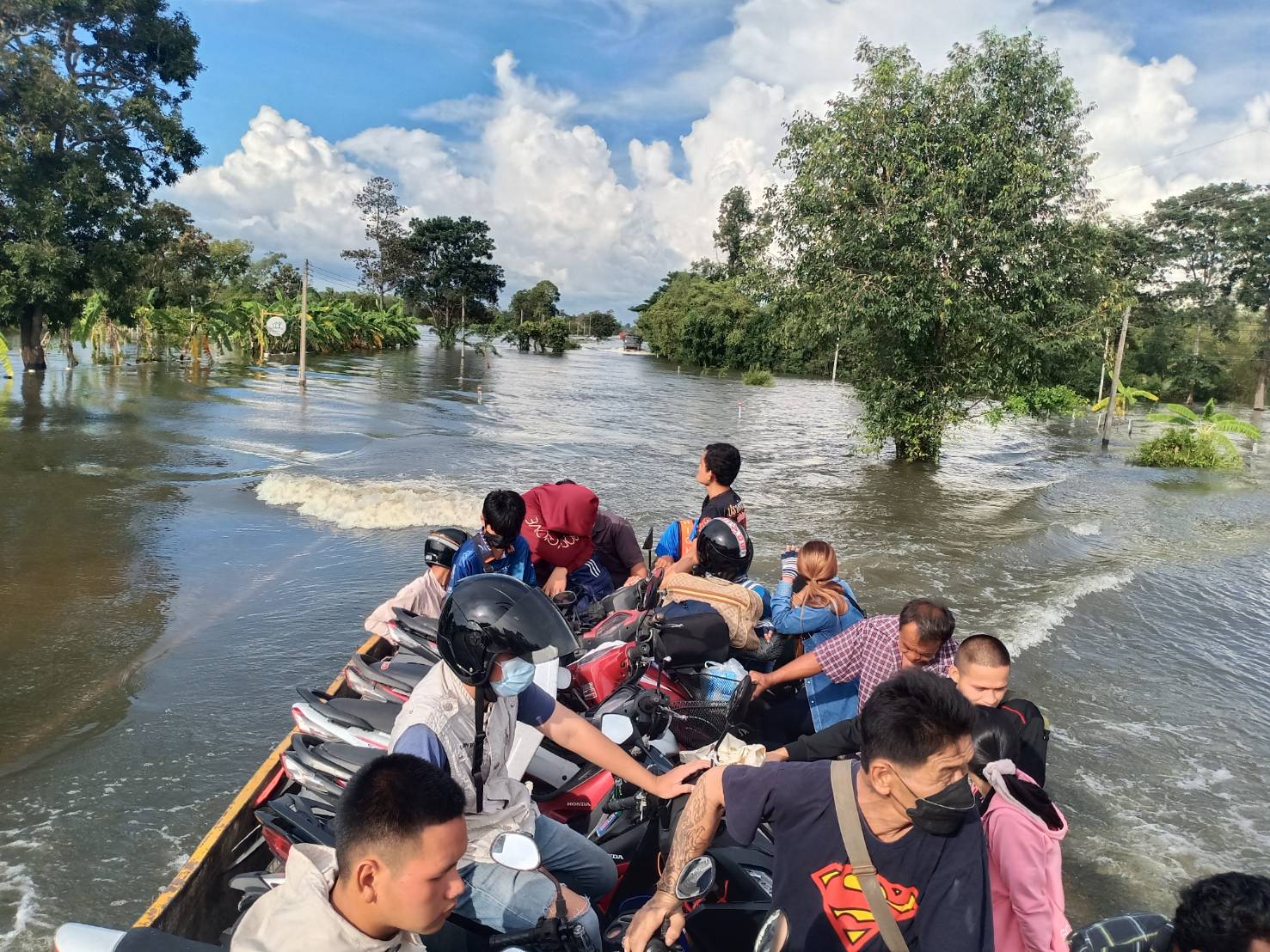 -ทางหลวงหมายเลข 2086 บ้านด่าน - เมืองน้อย ในพื้นที่ อ.ราษีไศล ช่วง กม.ที่ 37+000 - 39+500 ระดับน้ำ 50 ซม.การจราจรไม่สามารถผ่านได้
