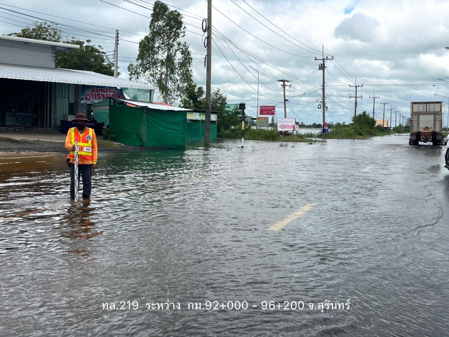 - ทางหลวงหมายเลข 226 ห้วยขะยุง – วารินชำราบ ในพื้นที่ อ.วารินชำราบ ช่วง กม.ที่ 319+600 – 319+800 ระดับน้ำ 130 ซม. การจราจรไม่สามารถผ่านได้ ให้ใช้ทางเลี่ยงท้องถิ่นแทน