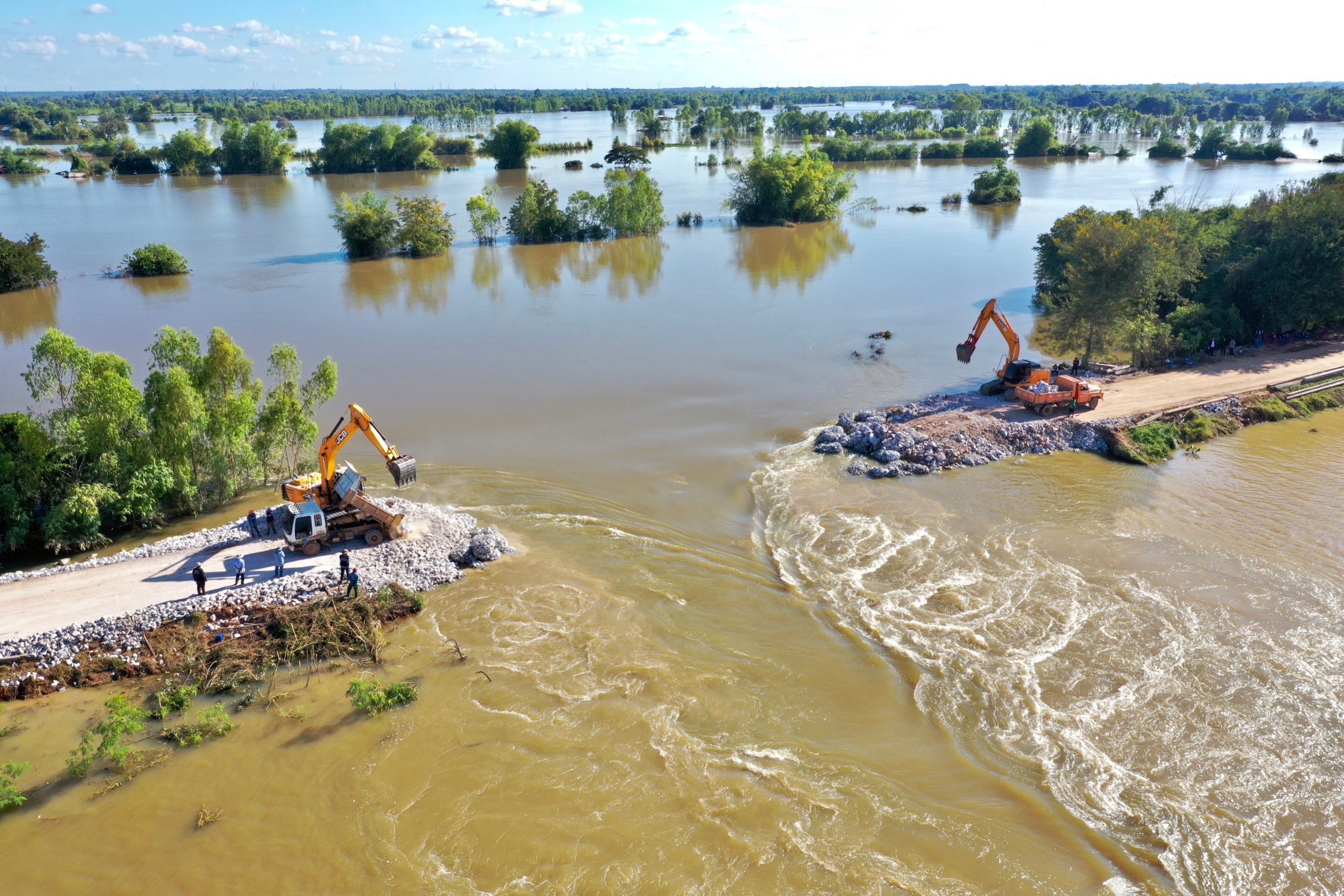 นายสราวุธ ทรงศิวิไล อธิบดีกรมทางหลวง เปิดเผยความคืบหน้าการเข้าให้ความช่วยเหลือจากสถานการณ์พนังกั้นลำน้ำชีขาด เมื่อวันที่ 16 ต.ค. 65 บริเวณตำบลลำชี อำเภอฆ้องชัย จังหวัดกาฬสินธุ์ กรมทางหลวงได้ร่วมบูรณาการกับกรมทางหลวงชนบท เข้าให้ความช่วยเหลือในด้านของรถบรรทุกขนวัสดุหินใหญ่ ถมพนังกั้นน้ำ ปัจจุบันได้ความยาวสะสมรวม 30 เมตร คาดว่าจะดำเนินการแล้วเสร็จในอีก 4 วัน สามารถใช้เส้นทางเลี่ยงโดยใช้เส้นทางหลวงชนบท กส.3052 สาย บ้านโจดไปบ้านหนองตุ ระยะทาง 3.7 กม. และ ได้ระดมกำลังเจ้าหน้าที่ กั้นน้ำโดยการวางกระสอบทราย พร้อมทำการติดตั้งป้ายเตือนแนวทาง เพื่ออำนวยความสะดวกและปลอดภัยแก่ผู้ใช้เส้นทาง ตามข้อสั่งการของ นายศักดิ์สยาม ชิดชอบ รัฐมนตรีว่าการกระทรวงคมนาคม ที่มีความห่วงใยประชาชนผู้ประสบภัยในครั้งนี้