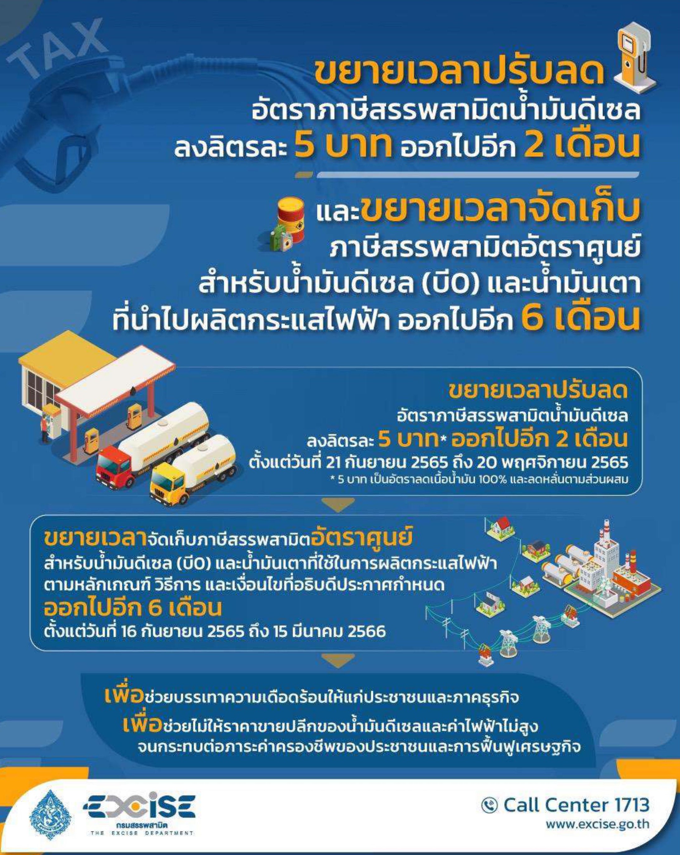 3. ขยายเวลาปรับลดอัตราภาษีสรรพสามิตน้ำมันดีเซลและขยายเวลาจัดเก็บภาษีสรรพสามิตอัตราศูนย์สำหรับน้ำมันดีเซลและน้ำมันเตาที่นำไปผลิตกระแสไฟฟ้า