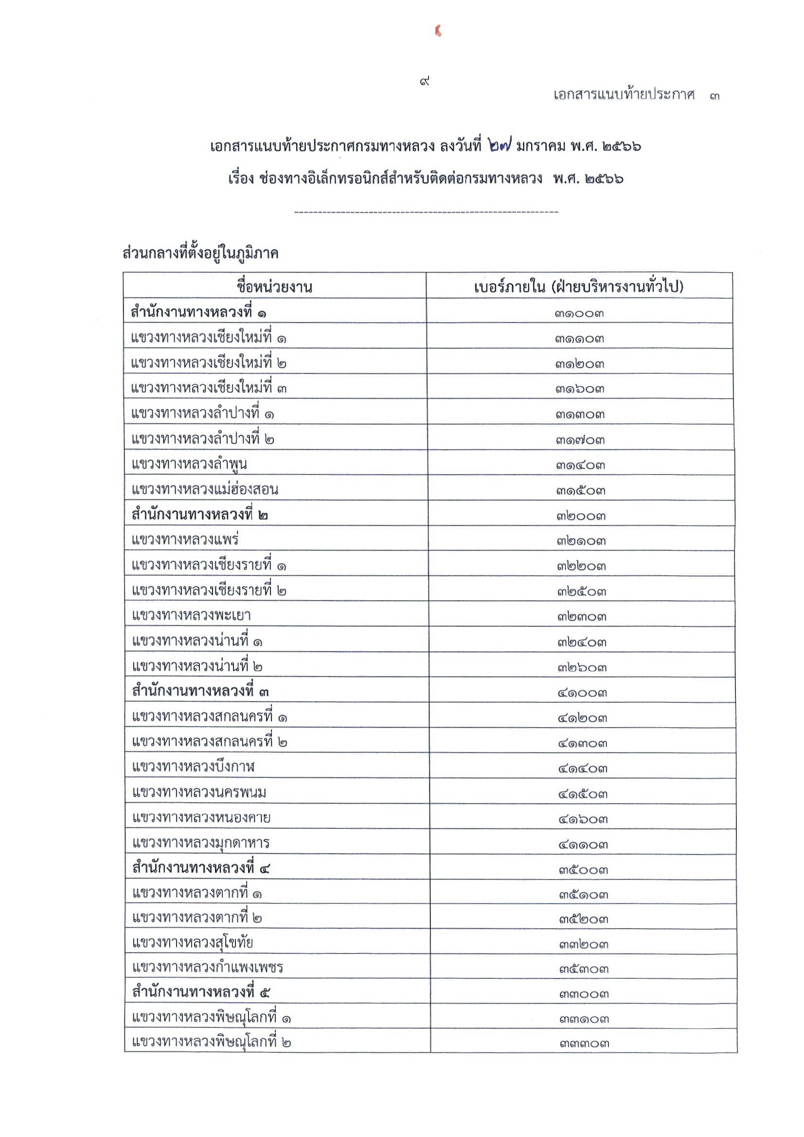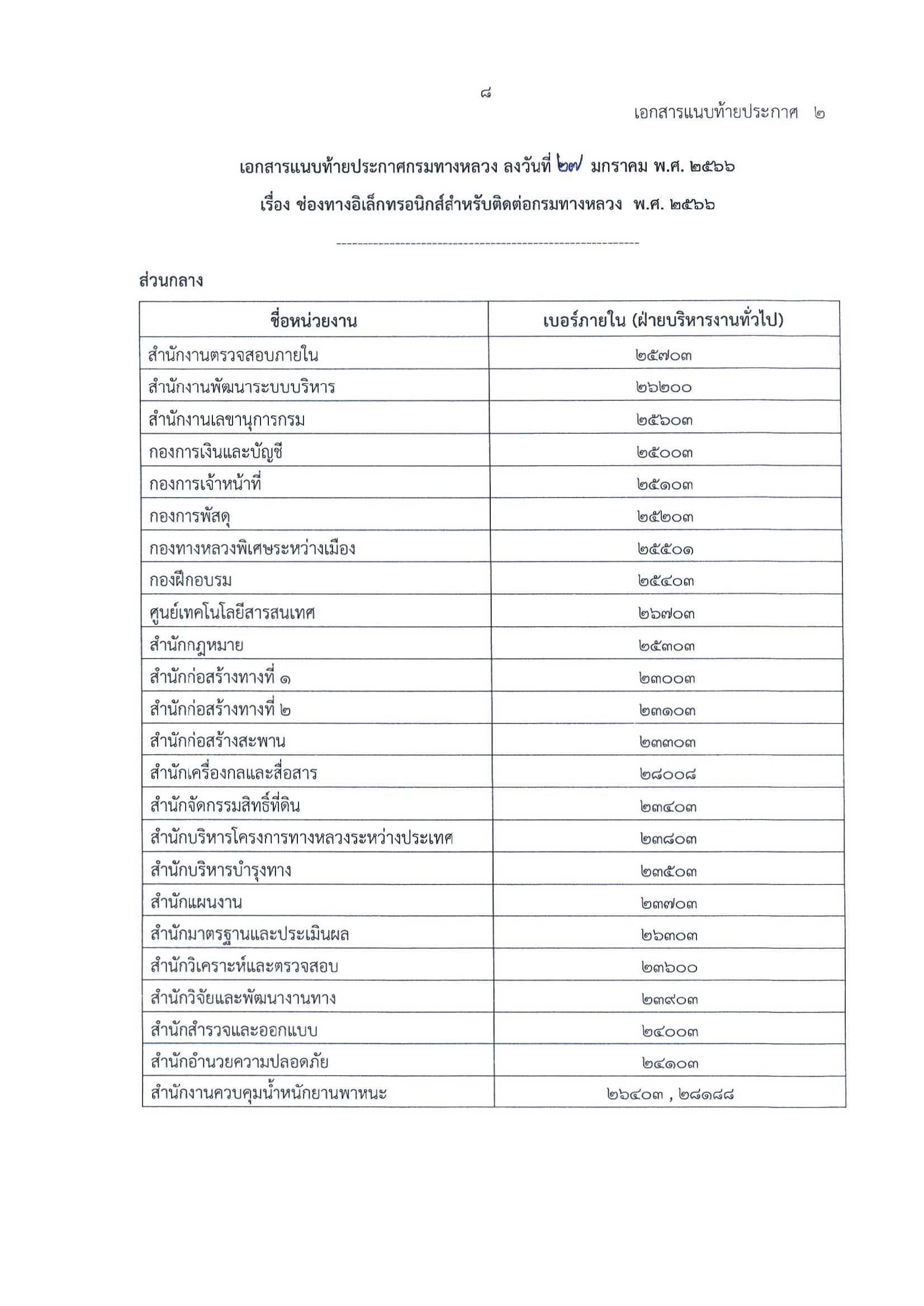 ประกาศกรมทางหลวง เรื่อง ช่องทางอิเล็กทรอนิกส์ สำหรับติดต่อกรมทาง พ.ศ.2566