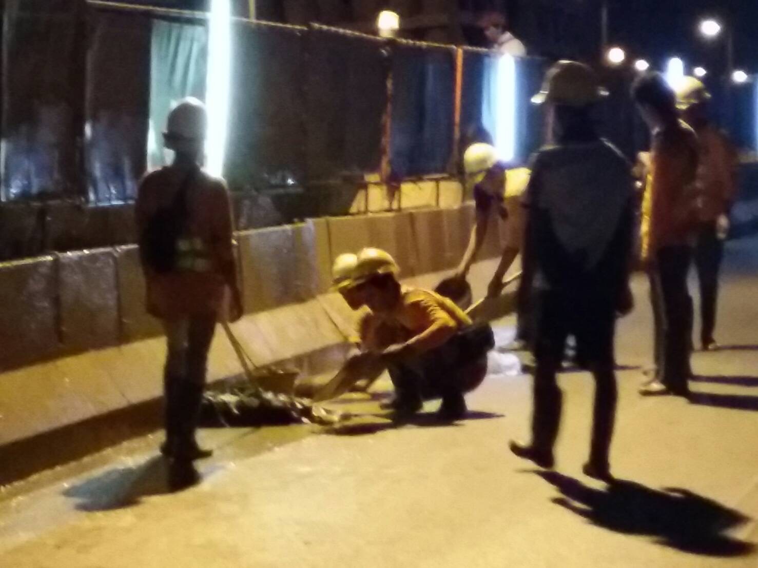 นายไพฑูรย์ พงษ์ชวลิต รองอธิบดีกรมทางหลวง กล่าวว่า กรมทางหลวงรับทราบถึงปัญหาดังกล่าวและได้เร่งสั่งการให้เจ้าหน้าที่ตรวจสอบข้อเท็จจริง โดยขอเรียนชี้แจงว่า เหตุดังกล่าวเกิดขึ้นบนทางหลวงหมายเลข 35 (ถนนพระรามที่ 2) วันที่ 10 กุมภาพันธ์ 2566 เวลา 21.00 น. ณ พื้นที่โครงการก่อสร้างทางหลวงพิเศษหมายเลข 82 สายทางยกระดับบางขุนเทียน-บ้านแพ้ว ช่วงเอกชัย – บ้านแพ้ว ตอนที่ 2 ที่ กม.23 จังหวัดสมุทรสาคร โดยมี บริษัท กิจการร่วมค้ากรุงธนไทย จำกัด ผู้ดำเนินการก่อสร้างโครงการฯ จากการตรวจสอบในพื้นที่ พบว่า สาเหตุเกิดขึ้นในช่วงเวลาการเตรียมงานเพื่อเจาะเสาเข็ม เวลา 22.00 – 05.00 น. โดยในเวลาประมาณ 20.30 น. ผู้รับจ้างพบว่าสารละลายพยุงหลุมเจาะที่ปากหลุมเจาะพร่องลง จึงทำการเติมสารละลายดังกล่าวเข้าหลุมเจาะเพื่อป้องกันผนังหลุมพัง ในขณะนั้นข้อต่อท่อส่งสารละลายเกิดหลุดออก ทำให้ของเหลวบางส่วนไหลออกนอกพื้นที่ลงสู่ถนน หลังจากเกิดเหตุผู้รับจ้างได้ดำเนินการปิดวาล์วท่อส่งสารละลายทันที แต่เนื่องจากขณะเกิดเหตุอยู่นอกเวลาการปฏิบัติงานก่อสร้างที่กำหนดตามมาตรการความปลอดภัย และบริษัทฯ ไม่ได้แจ้งให้ผู้ควบคุมงานทราบว่าจะมีการเติมสารละลายพยุงหลุมเจาะ ทำให้ไม่สามารถดำเนินการแก้ไขปัญหาดังกล่าวได้ทันท่วงที ส่งผลให้ประชาชนได้รับผลกระทบต่อทรัพย์สิน