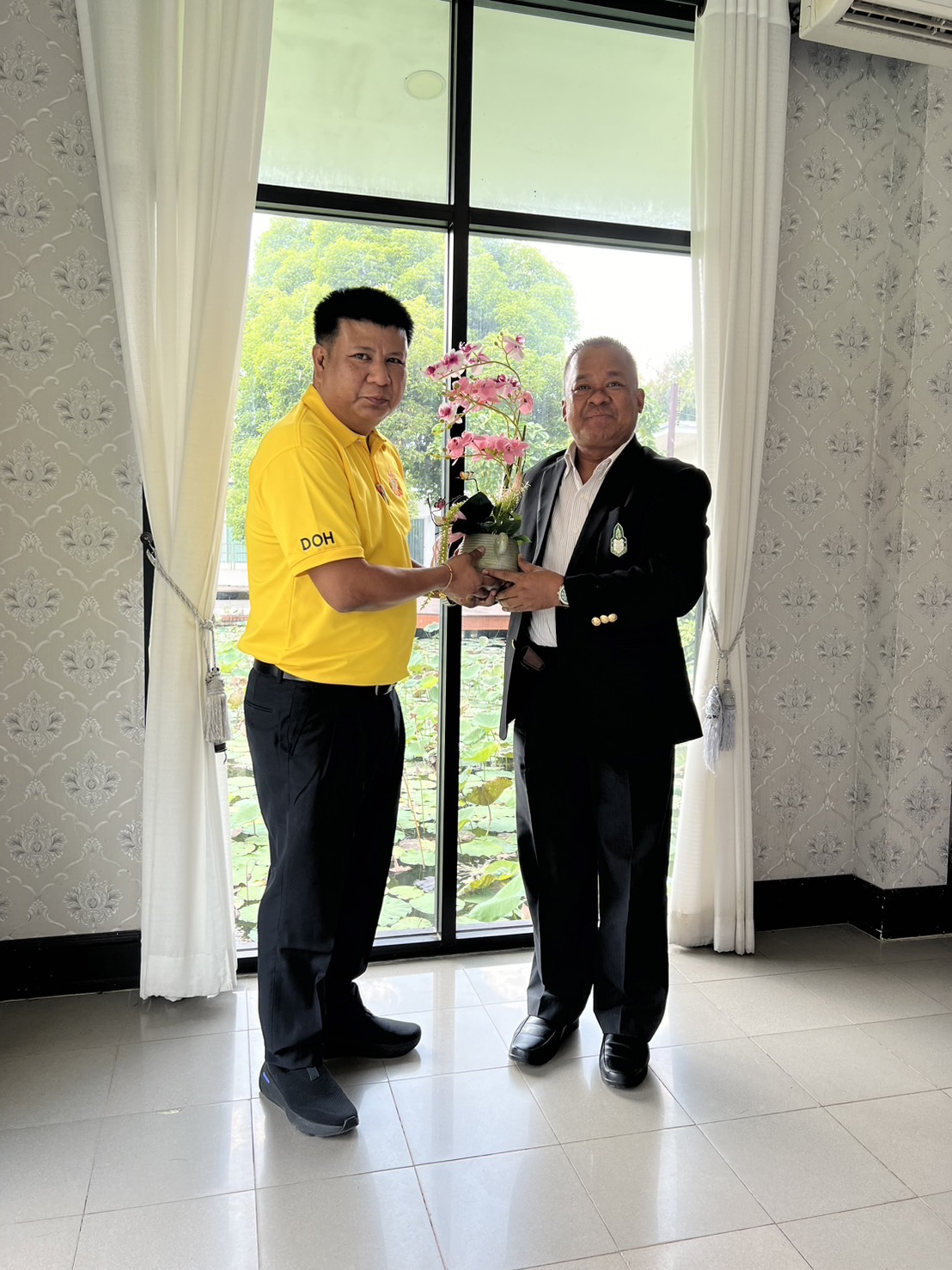 นายเอกนรินทร์ จินทะวงค์ ผู้อำนวยการสำนักงานทางหลวงที่ 11 (ลพบุรี) พร้อมเจ้าหน้าที่สำนักงานทางหลวงที่ 11 (ลพบุรี) ให้การต้อนรับ นายกันตเมศฐ์ ชัชวาลรังสรรค์ เนื่องในโอกาสย้ายมาดำรงตำแหน่งผู้อำนวยการแขวงทางหลวงนครสวรรค์ที่ 2 (ตากฟ้า)