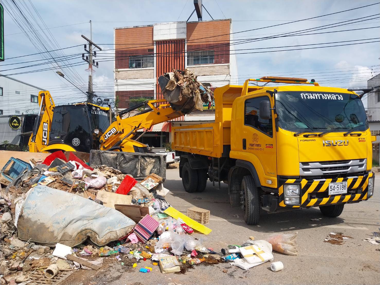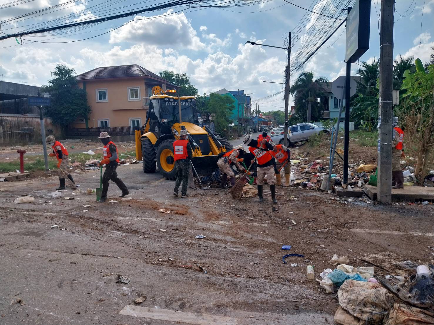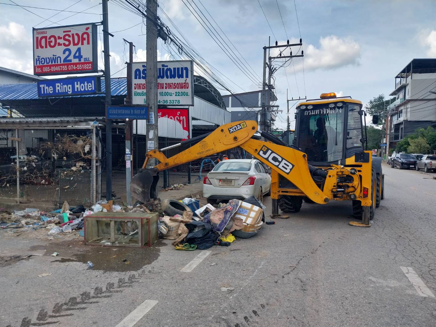 ชุดเครื่องจักรกล สำนักงานทางหลวงที่ 11 และแขวงทางหลวงในสังกัด ร่วมปฏิงานภารกิจฟื้นฟูเมืองหาดใหญ่ พื้นที่ถนนสาครมงคล 2 เริ่มปฏิบัติงานเวลา 13.00 น. ถึง 16.30 น.