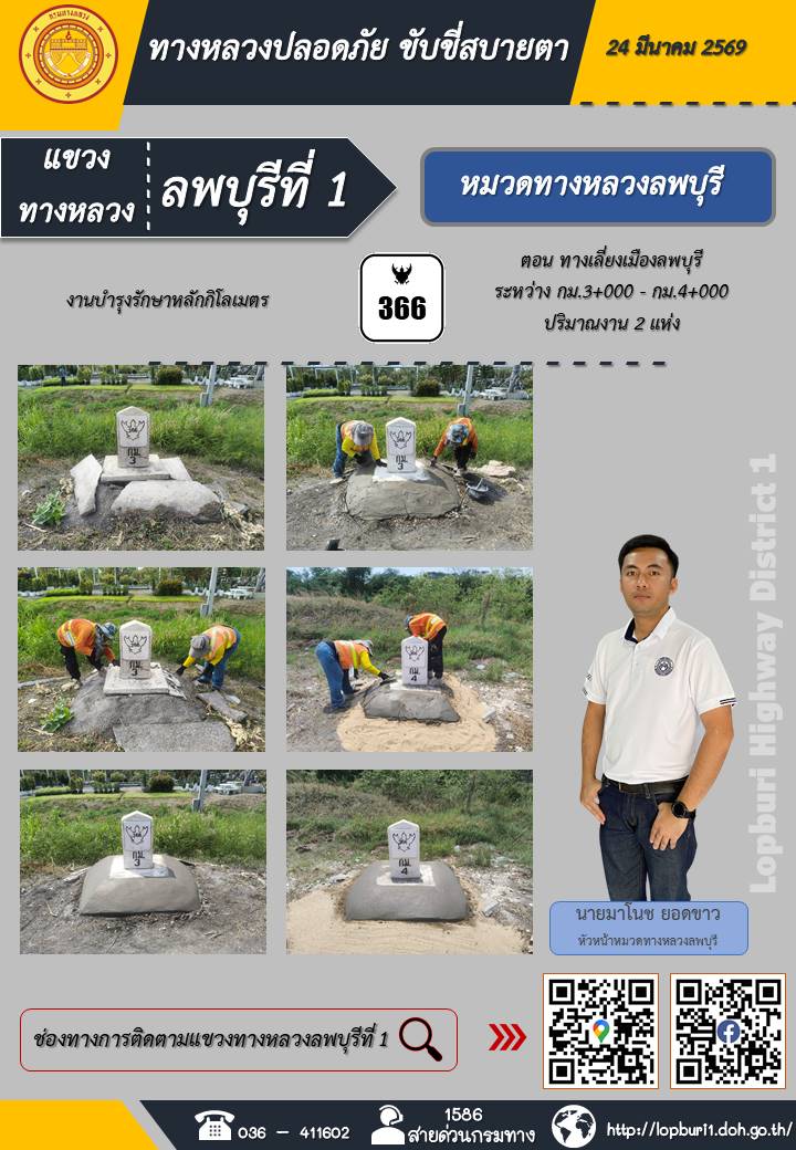 ทางหลวงปลอดภัยขับขี่สบายตา แขวงทางหลวงลพบุรีที่ 1 ประจำวันที่ 24 มีนาคม 2569