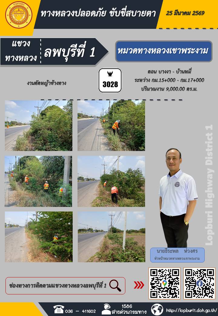ทางหลวงปลอดภัยขับขี่สบายตา แขวงทางหลวงลพบุรีที่ 1 ประจำวันที่ 25 มีนาคม 2569