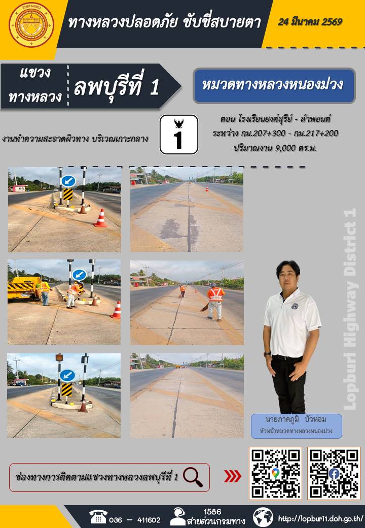 ทางหลวงปลอดภัยขับขี่สบายตา แขวงทางหลวงลพบุรีที่ 1 ประจำวันที่ 24 มีนาคม 2569