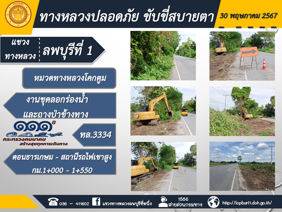ทางหลวงปลอดภัยขับขี่สบายตา แขวงทางหลวงลพบุรีที่ 1 ประจำวันที่ 30 พฤษภาคม 2567