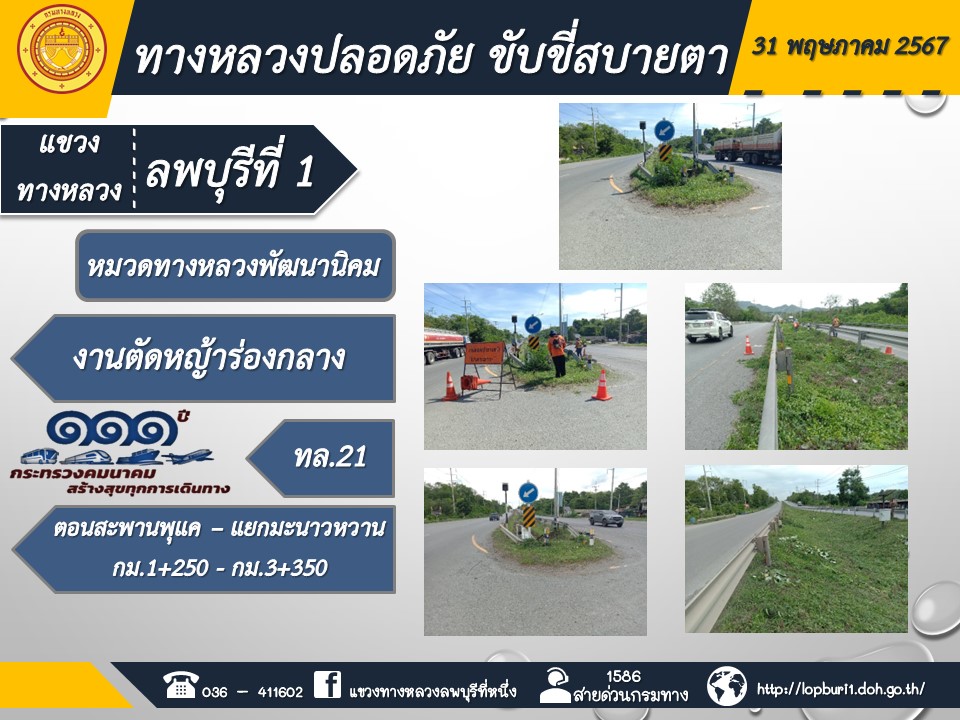 ทางหลวงปลอดภัยขับขี่สบายตา แขวงทางหลวงลพบุรีที่ 1 ประจำวันที่ 31 พฤษภาคม 2567