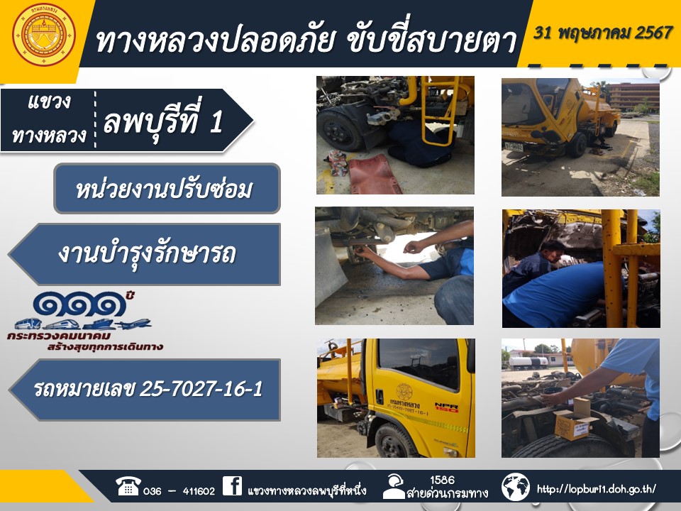 ทางหลวงปลอดภัยขับขี่สบายตา แขวงทางหลวงลพบุรีที่ 1 ประจำวันที่ 27 มีนาคม 2567