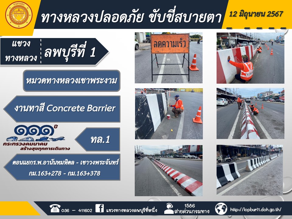 ทางหลวงปลอดภัยขับขี่สบายตา แขวงทางหลวงลพบุรีที่ 1 ประจำวันที่ 12 มิถุนายน 2567
