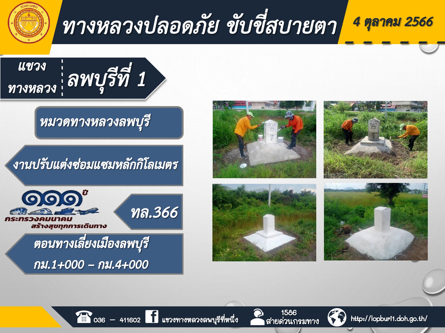 ทางหลวงปลอดภัยขับขี่สบายตา แขวงทางหลวงลพบุรีที่ 1 ประจำวันที่ 4 ตุลาคม 2566