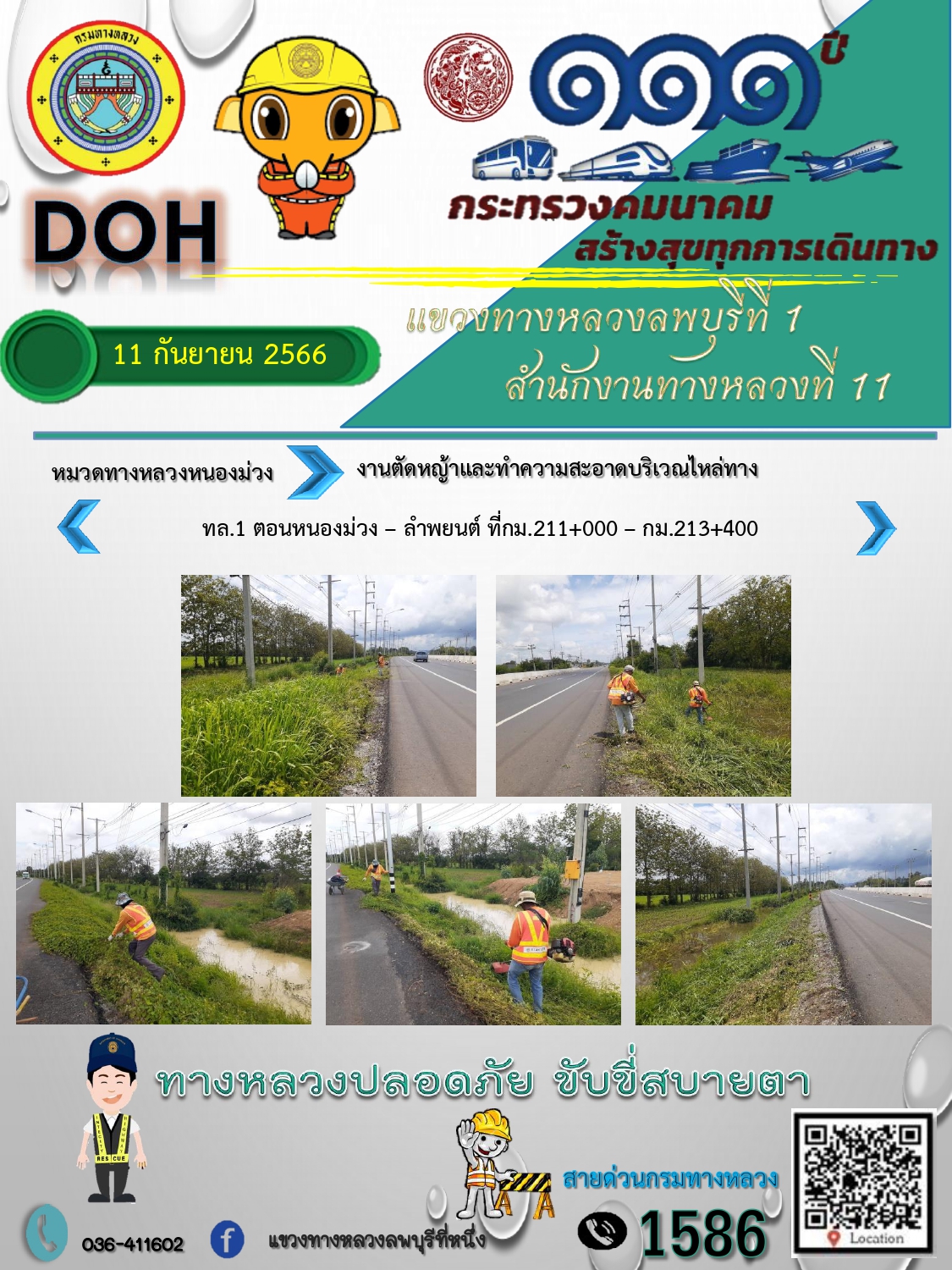 ทางหลวงปลอดภัยขับขี่สบายตา แขวงทางหลวงลพบุรีที่ 1 ประจำวันที่ 11 กันยายน 2566