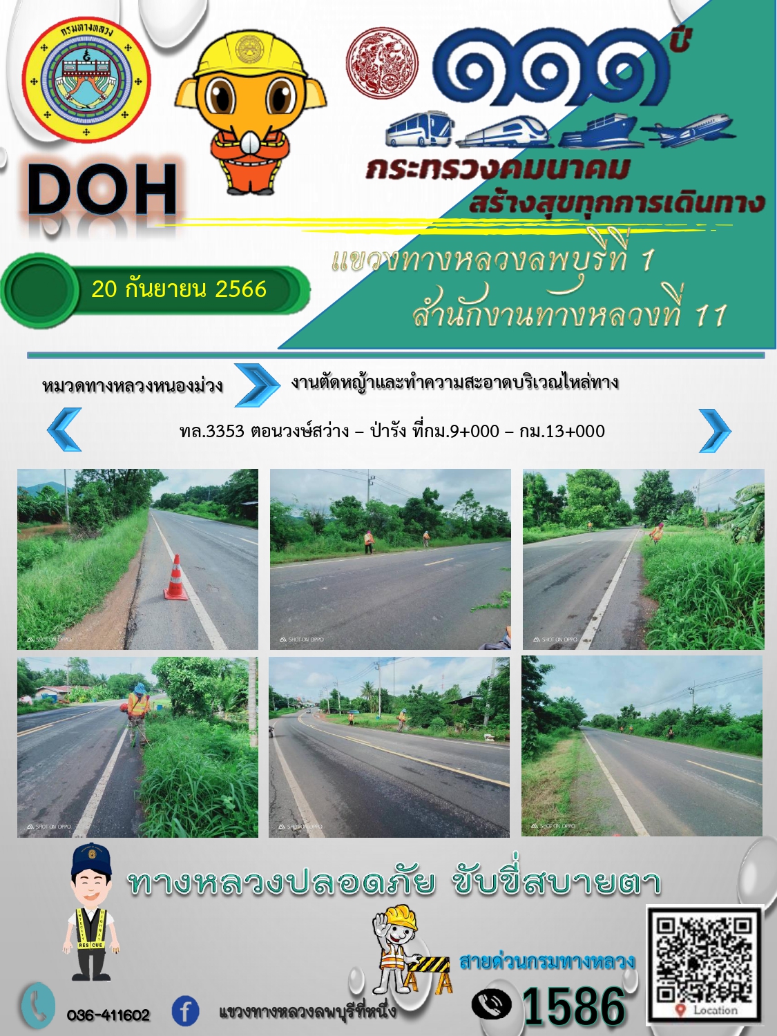 ทางหลวงปลอดภัยขับขี่สบายตา แขวงทางหลวงลพบุรีที่ 1 ประจำวันที่ 20 กันยายน 2566
