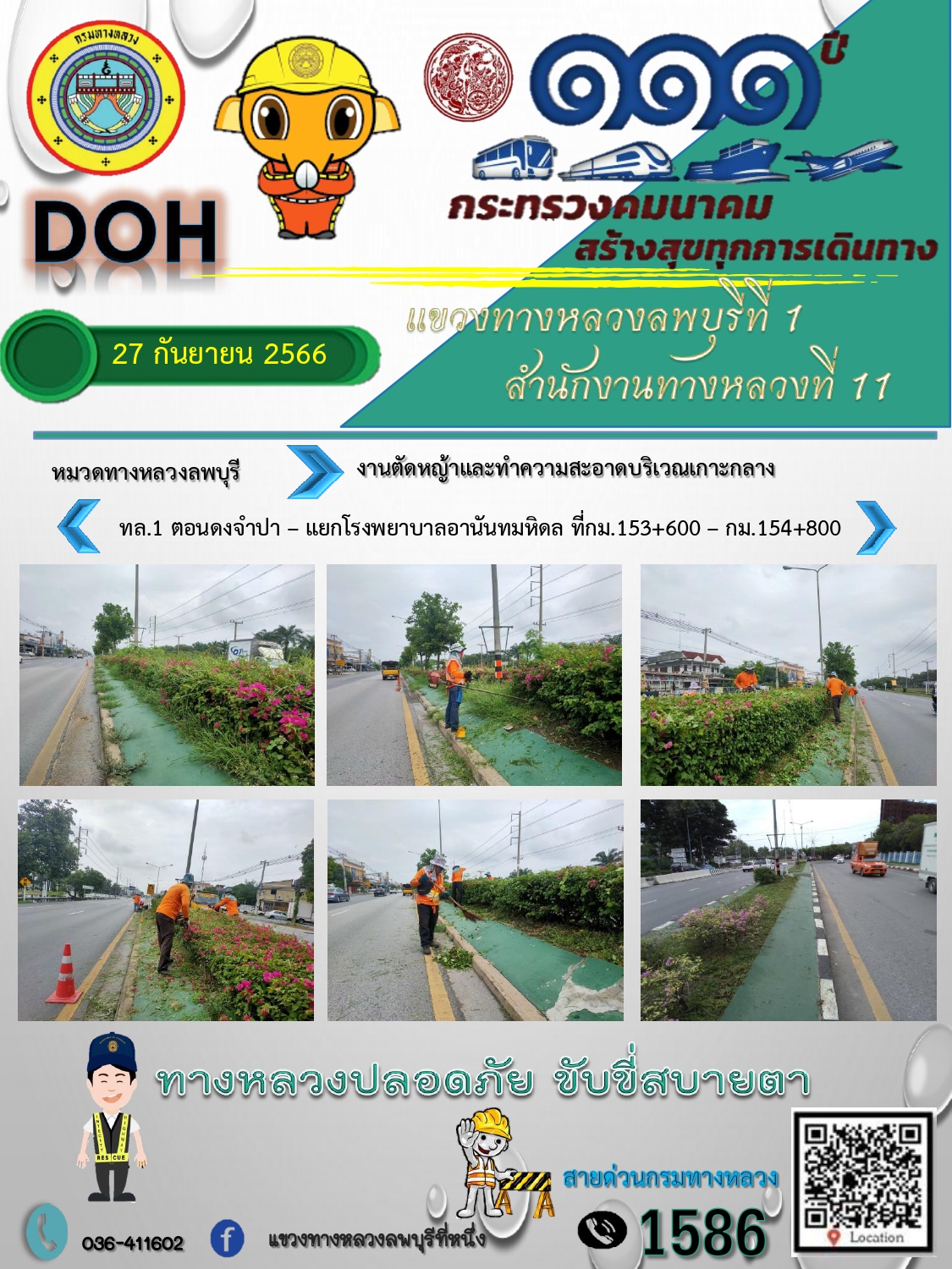 ทางหลวงปลอดภัยขับขี่สบายตา แขวงทางหลวงลพบุรีที่ 1 ประจำวันที่ 27 กันยายน 2566