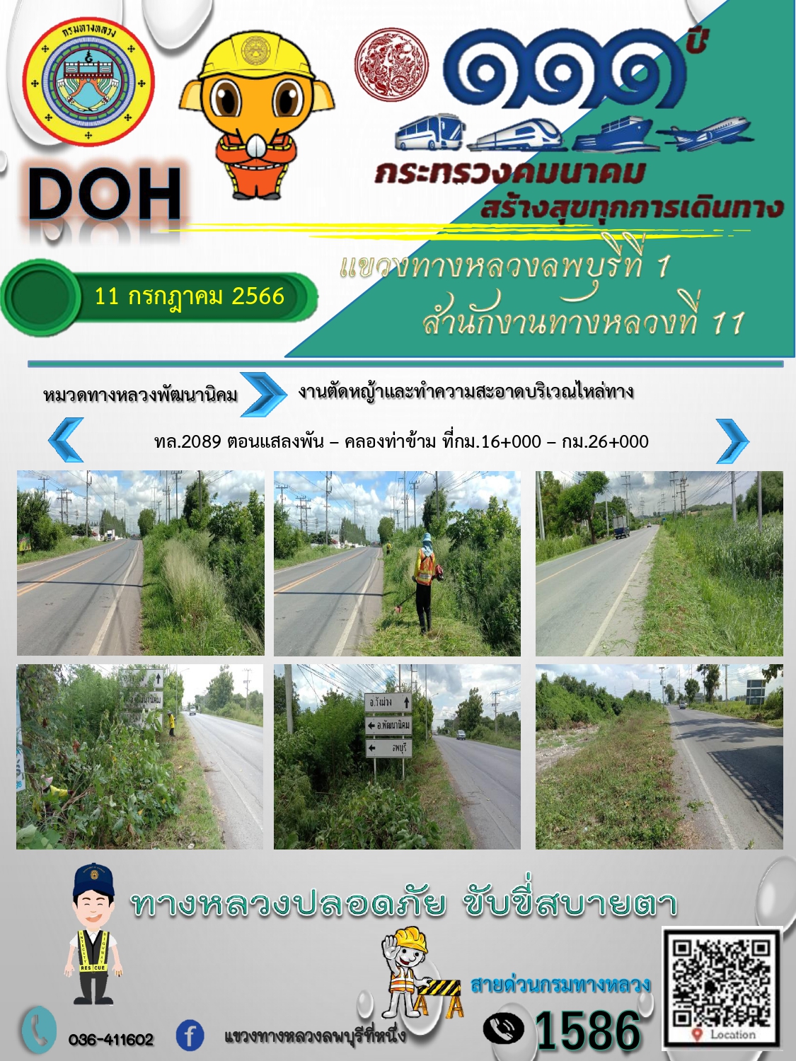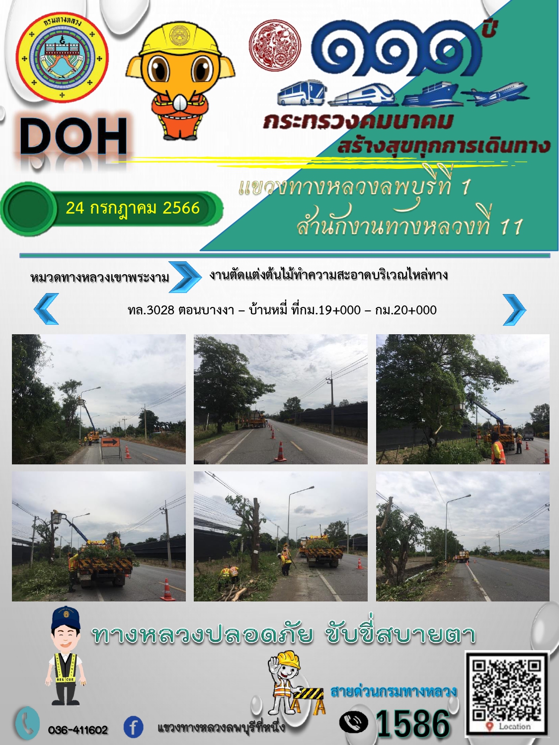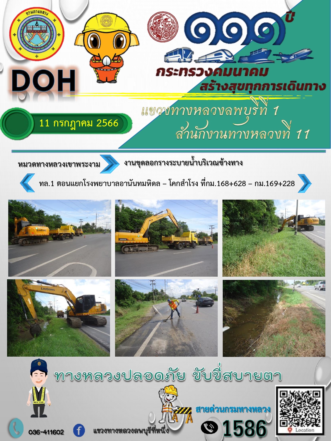 ทางหลวงปลอดภัยขับขี่สบายตา แขวงทางหลวงลพบุรีที่ 1 ประจำวันที่ 11 กรกฎาคม 2566