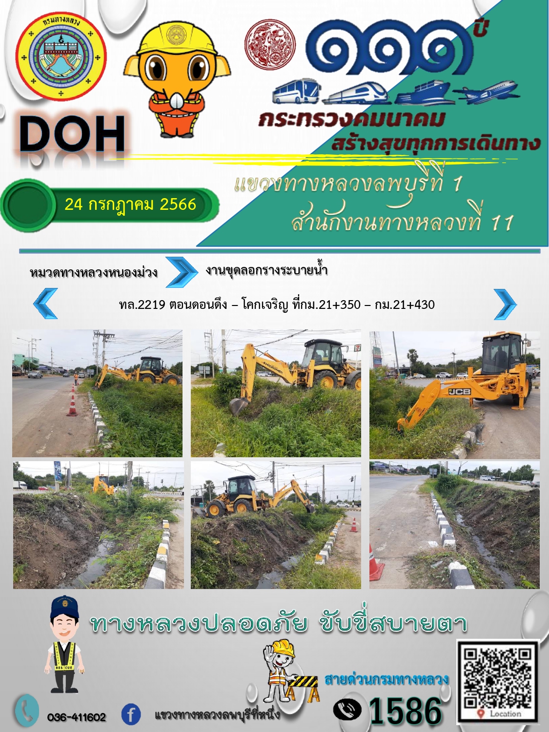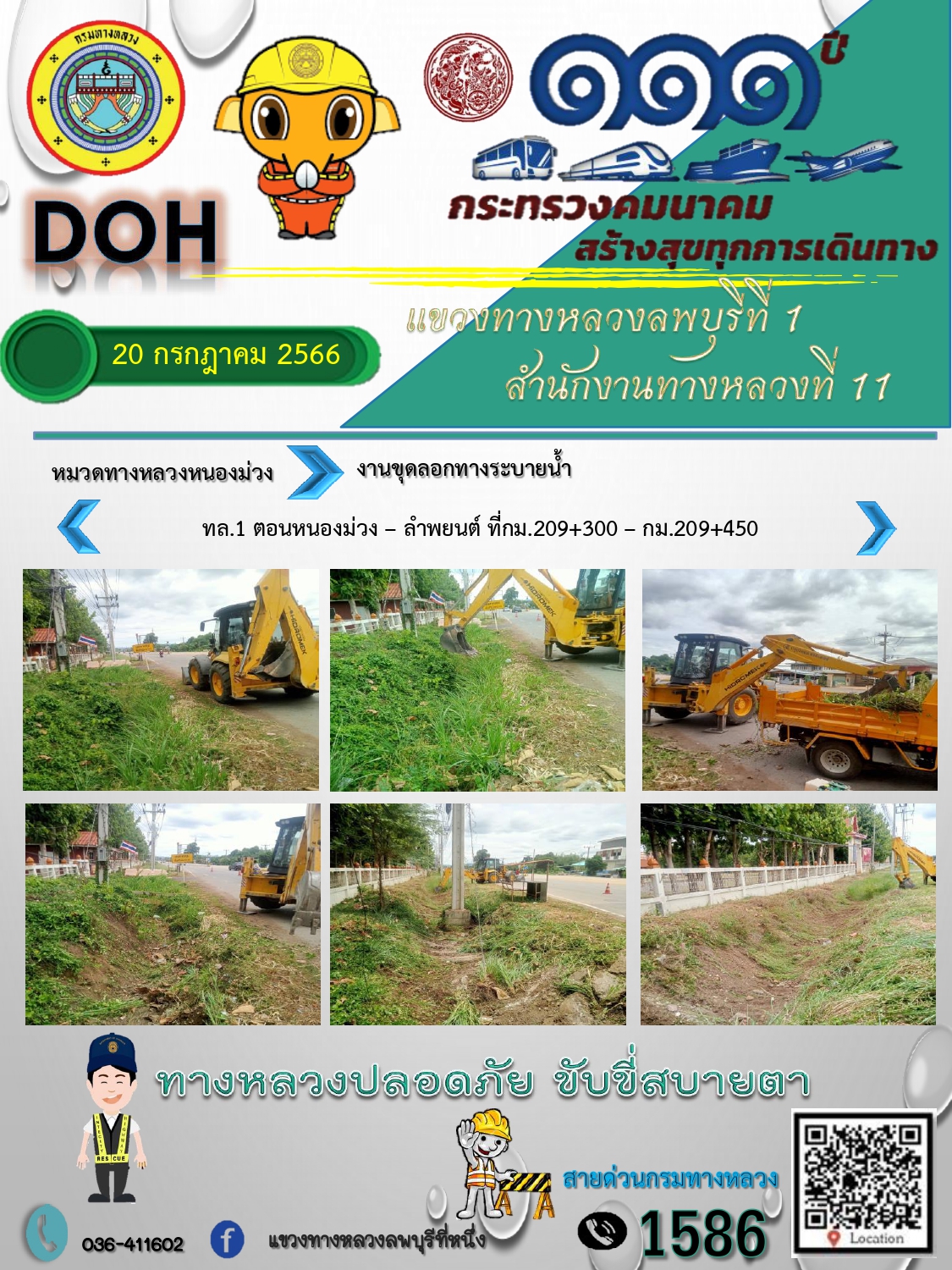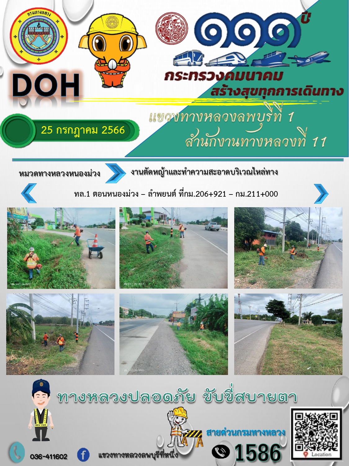 ทางหลวงปลอดภัยขับขี่สบายตา แขวงทางหลวงลพบุรีที่ 1 ประจำวันที่ 11 กรกฎาคม 2566