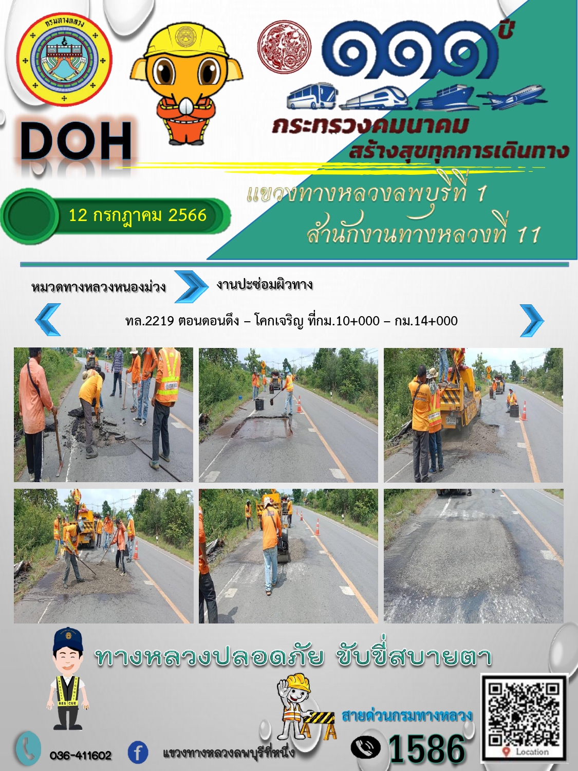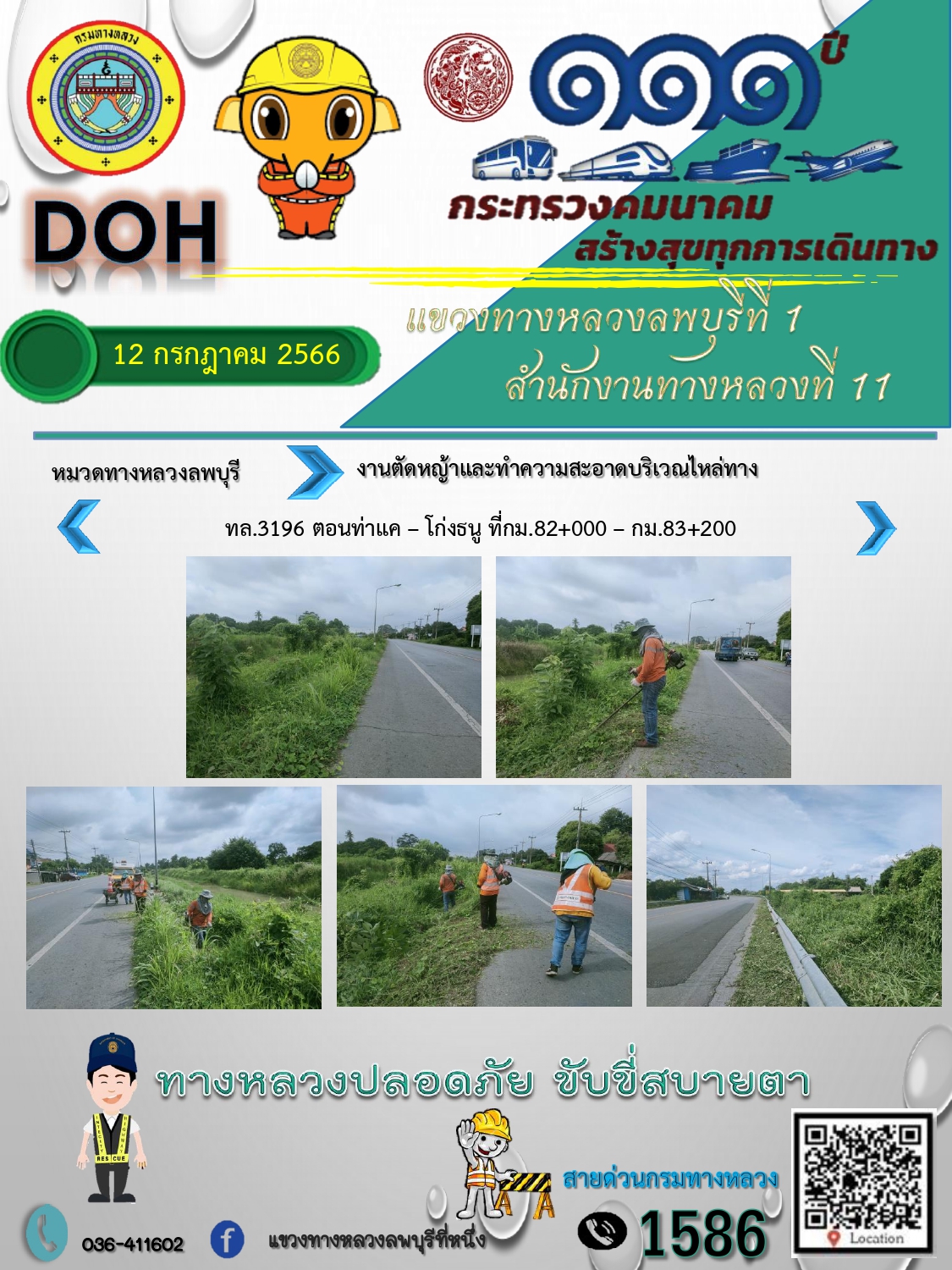 ทางหลวงปลอดภัยขับขี่สบายตา แขวงทางหลวงลพบุรีที่ 1 ประจำวันที่ 12 กรกฎาคม 2566