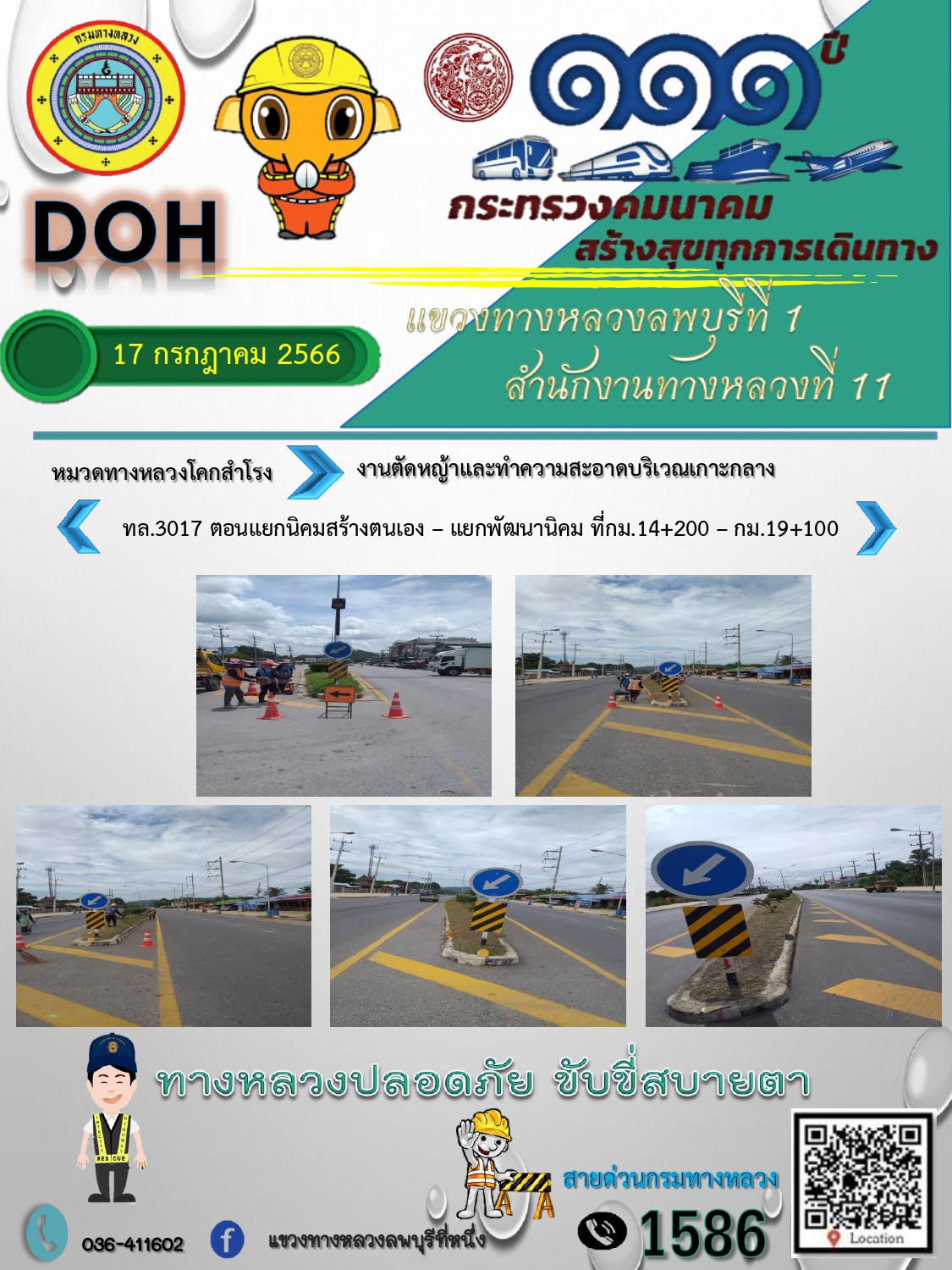 ทางหลวงปลอดภัยขับขี่สบายตา แขวงทางหลวงลพบุรีที่ 1 ประจำวันที่ 17 กรกฎาคม 2566