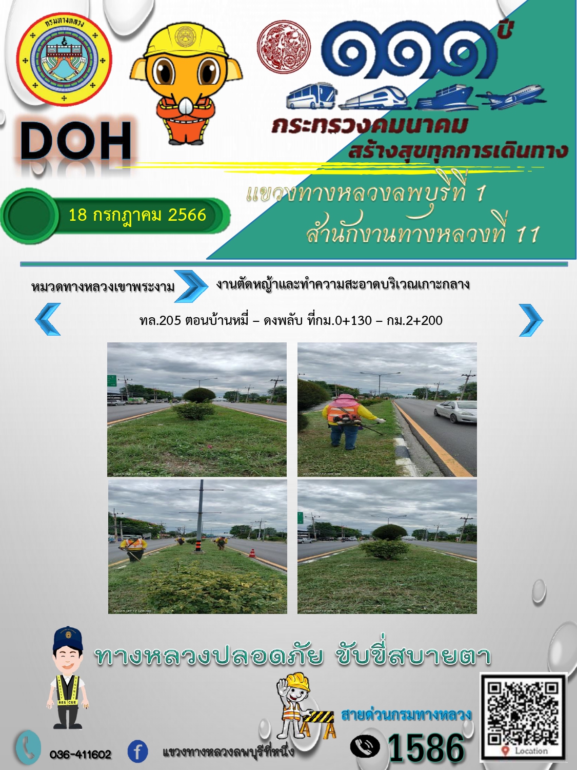 ทางหลวงปลอดภัยขับขี่สบายตา แขวงทางหลวงลพบุรีที่ 1 ประจำวันที่ 18 กรกฎาคม 2566