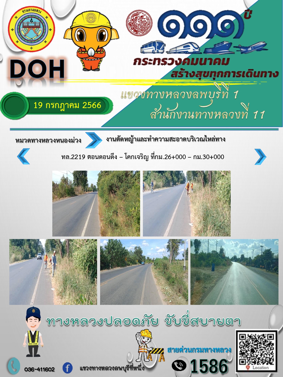 ทางหลวงปลอดภัยขับขี่สบายตา แขวงทางหลวงลพบุรีที่ 1 ประจำวันที่ 19 กรกฎาคม 2566