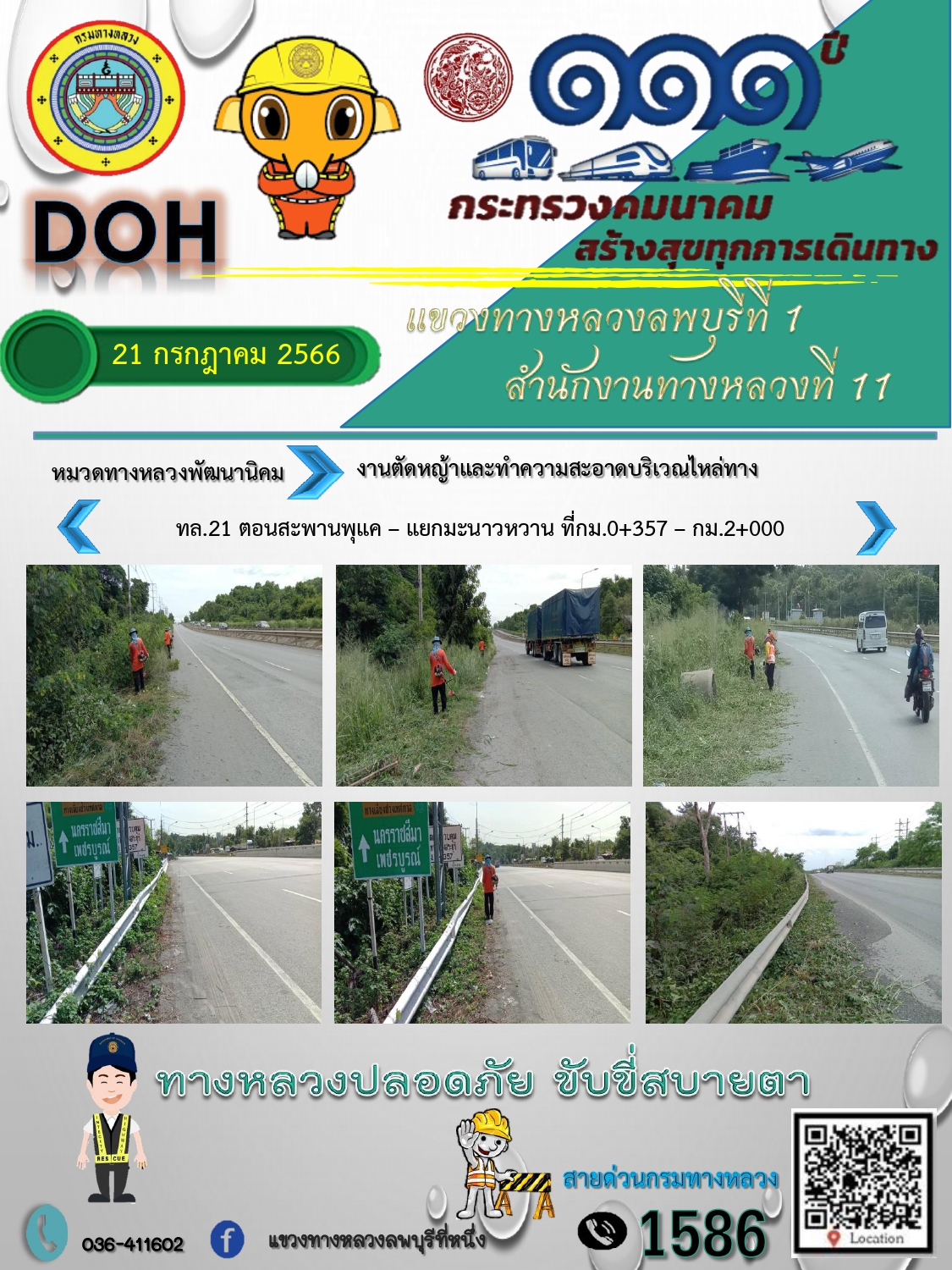 ทางหลวงปลอดภัยขับขี่สบายตา แขวงทางหลวงลพบุรีที่ 1 ประจำวันที่ 21 กรกฎาคม 2566