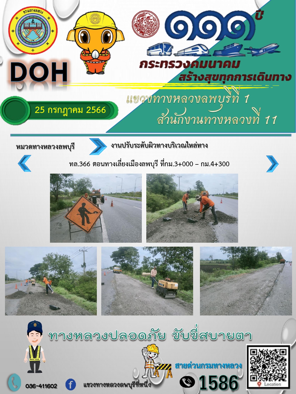 ทางหลวงปลอดภัยขับขี่สบายตา แขวงทางหลวงลพบุรีที่ 1 ประจำวันที่ 25 กรกฎาคม 2566