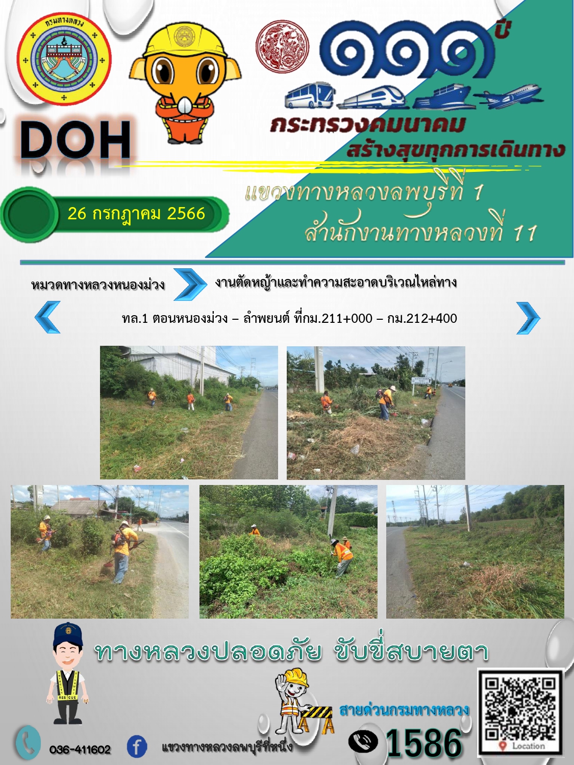 ทางหลวงปลอดภัยขับขี่สบายตา แขวงทางหลวงลพบุรีที่ 1 ประจำวันที่ 26 กรกฎาคม 2566