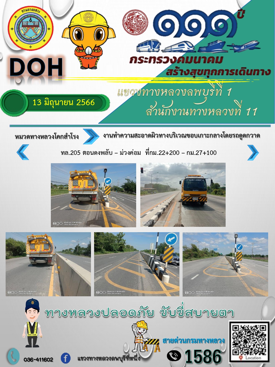 ทางหลวงปลอดภัยขับขี่สบายตา แขวงทางหลวงลพบุรีที่ 1 ประจำวันที่ 13 มิถุนายน 2566