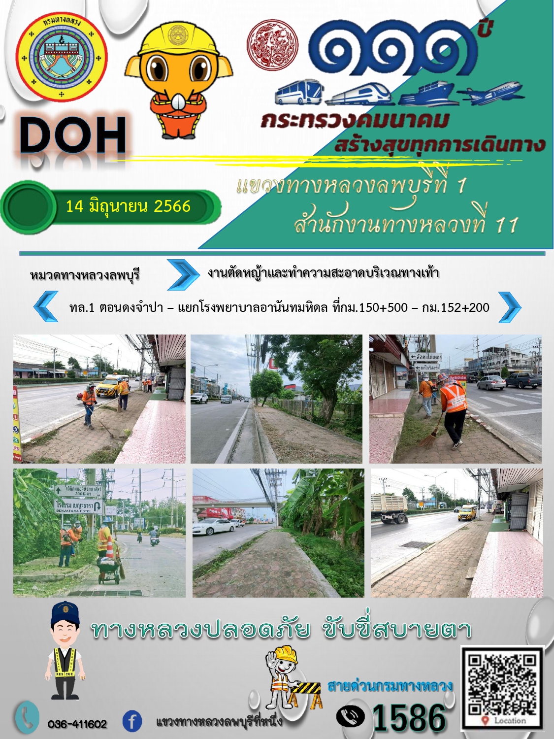 ทางหลวงปลอดภัยขับขี่สบายตา แขวงทางหลวงลพบุรีที่ 1 ประจำวันที่ 14 มิถุนายน 2566