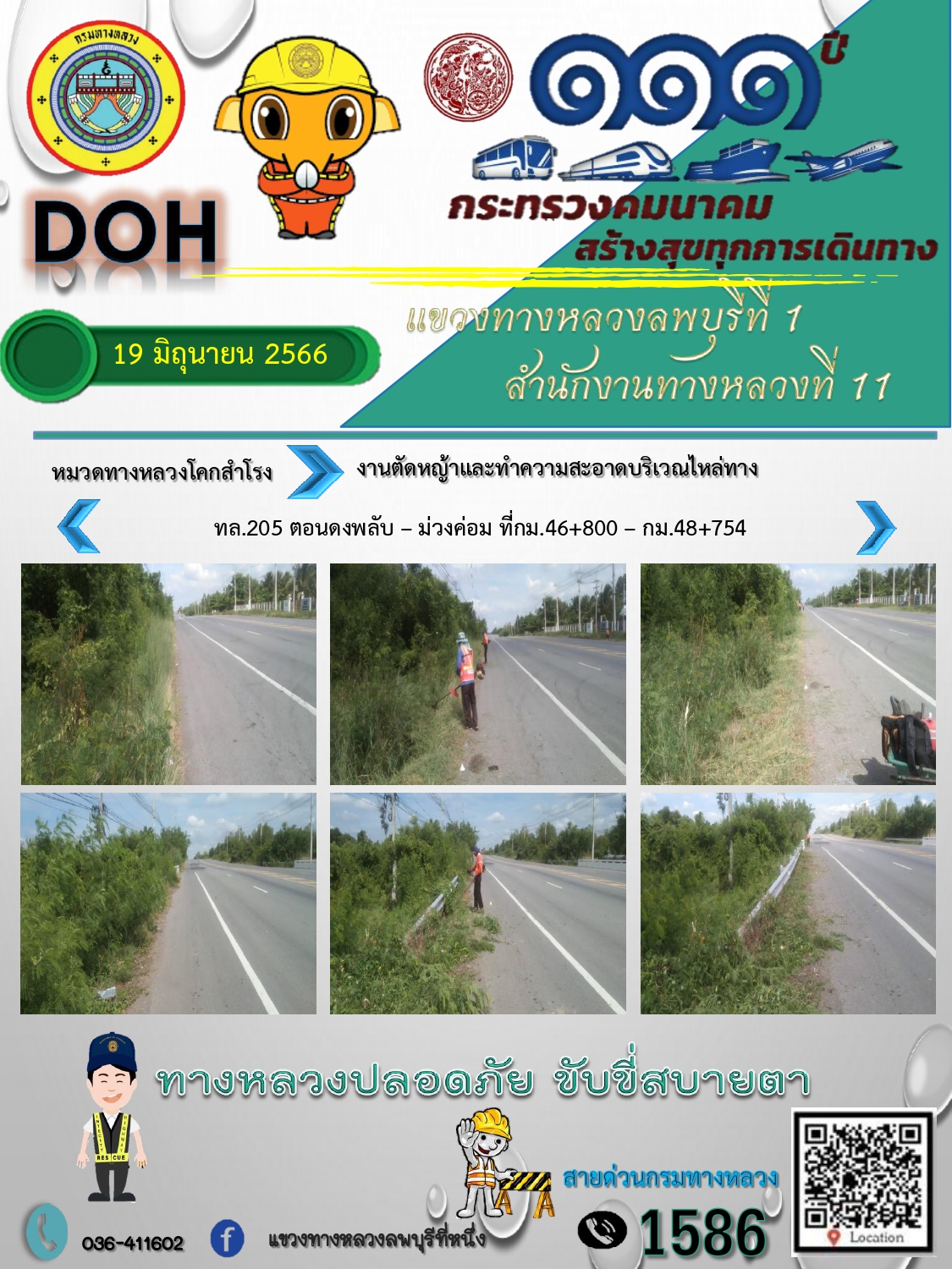 ทางหลวงปลอดภัยขับขี่สบายตา แขวงทางหลวงลพบุรีที่ 1 ประจำวันที่ 19 มิถุนายน 2566