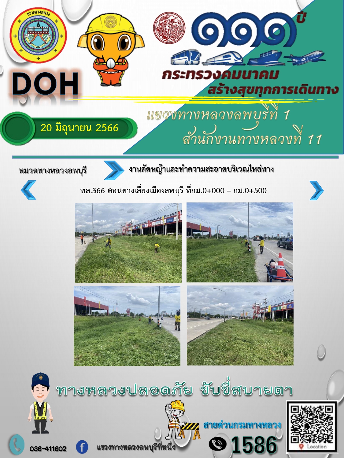 ทางหลวงปลอดภัยขับขี่สบายตา แขวงทางหลวงลพบุรีที่ 1 ประจำวันที่ 20 มิถุนายน 2566