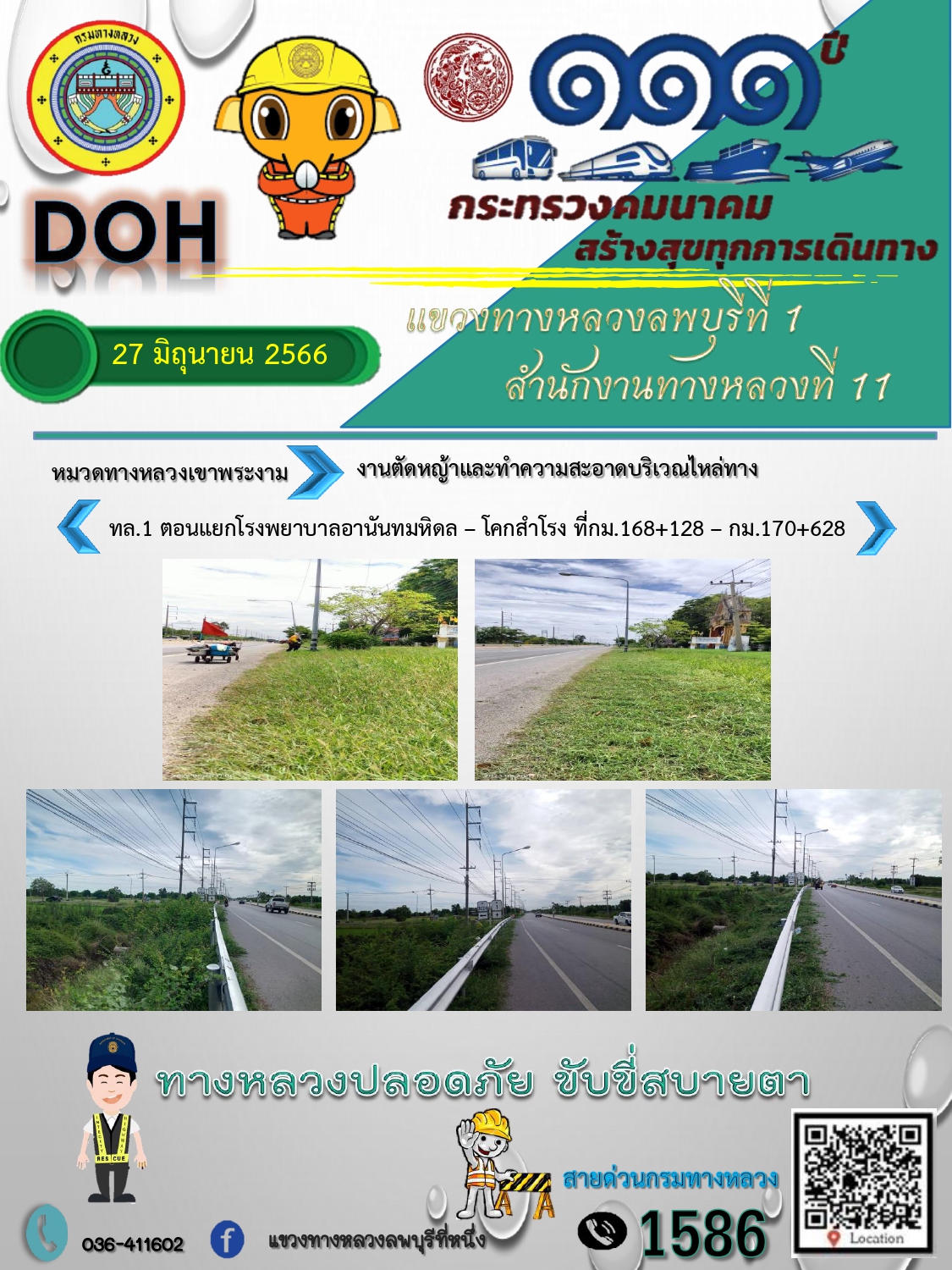 ทางหลวงปลอดภัยขับขี่สบายตา แขวงทางหลวงลพบุรีที่ 1 ประจำวันที่ 27 มิถุนายน 2566