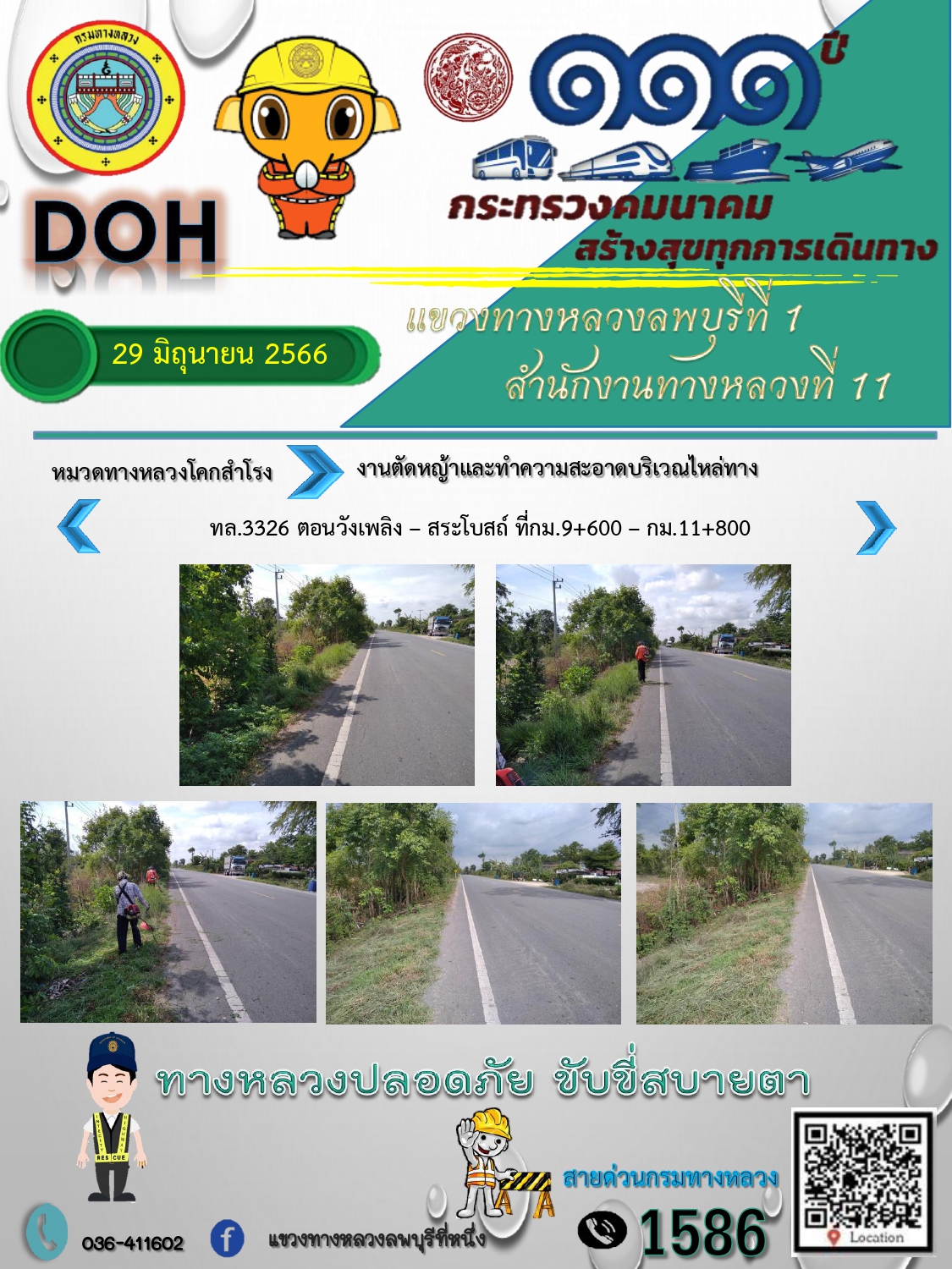 ทางหลวงปลอดภัยขับขี่สบายตา แขวงทางหลวงลพบุรีที่ 1 ประจำวันที่ 29 มิถุนายน 2566