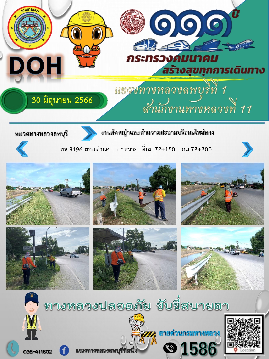 ทางหลวงปลอดภัยขับขี่สบายตา แขวงทางหลวงลพบุรีที่ 1 ประจำวันที่ 30 มิถุนายน 2566