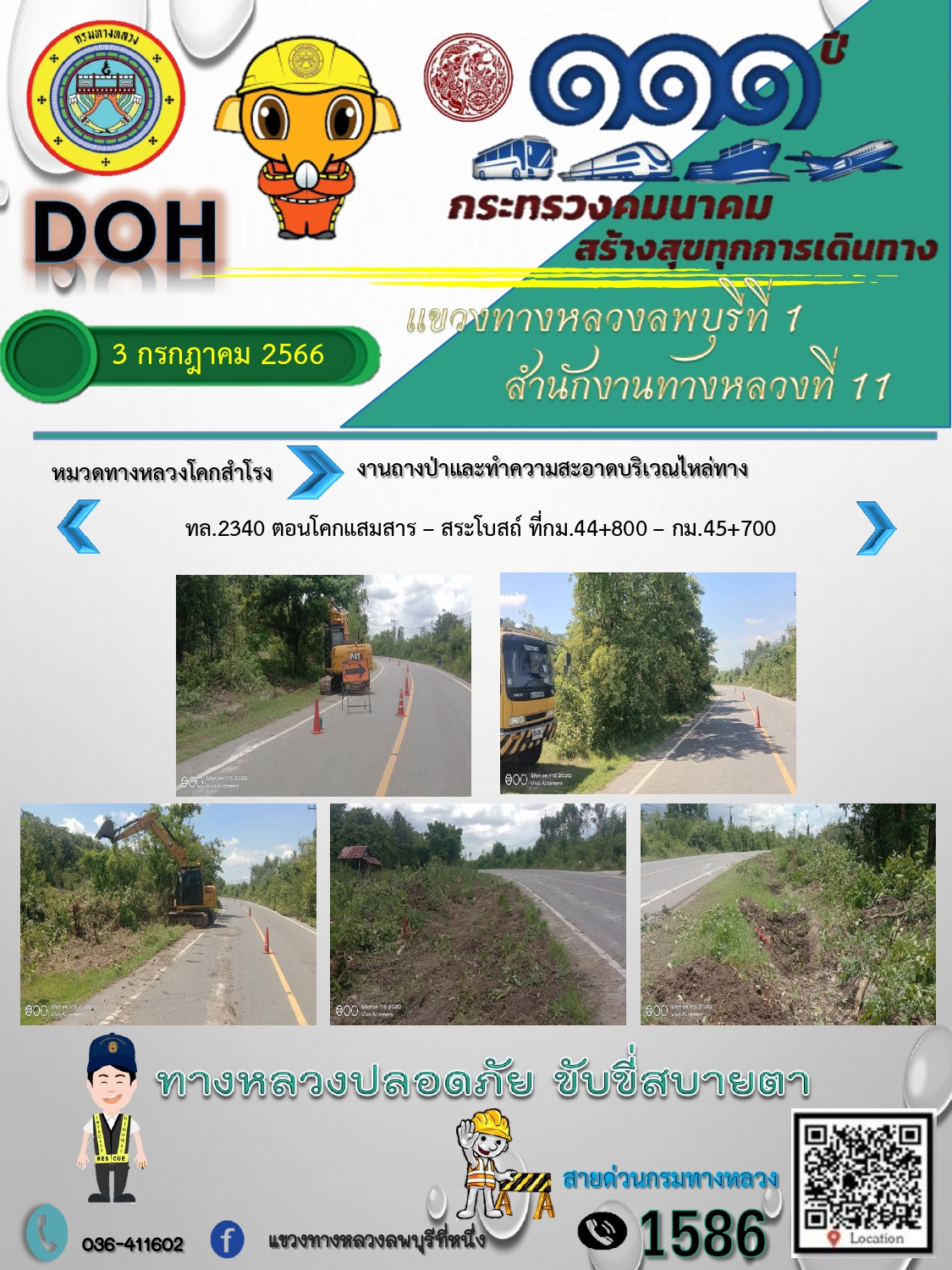 ทางหลวงปลอดภัยขับขี่สบายตา แขวงทางหลวงลพบุรีที่ 1 ประจำวันที่ 3 กรกฎาคม 2566