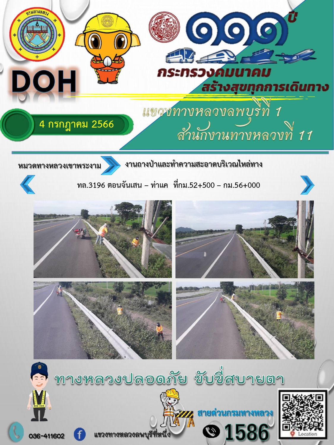 ทางหลวงปลอดภัยขับขี่สบายตา แขวงทางหลวงลพบุรีที่ 1 ประจำวันที่ 4 กรกฎาคม 2566