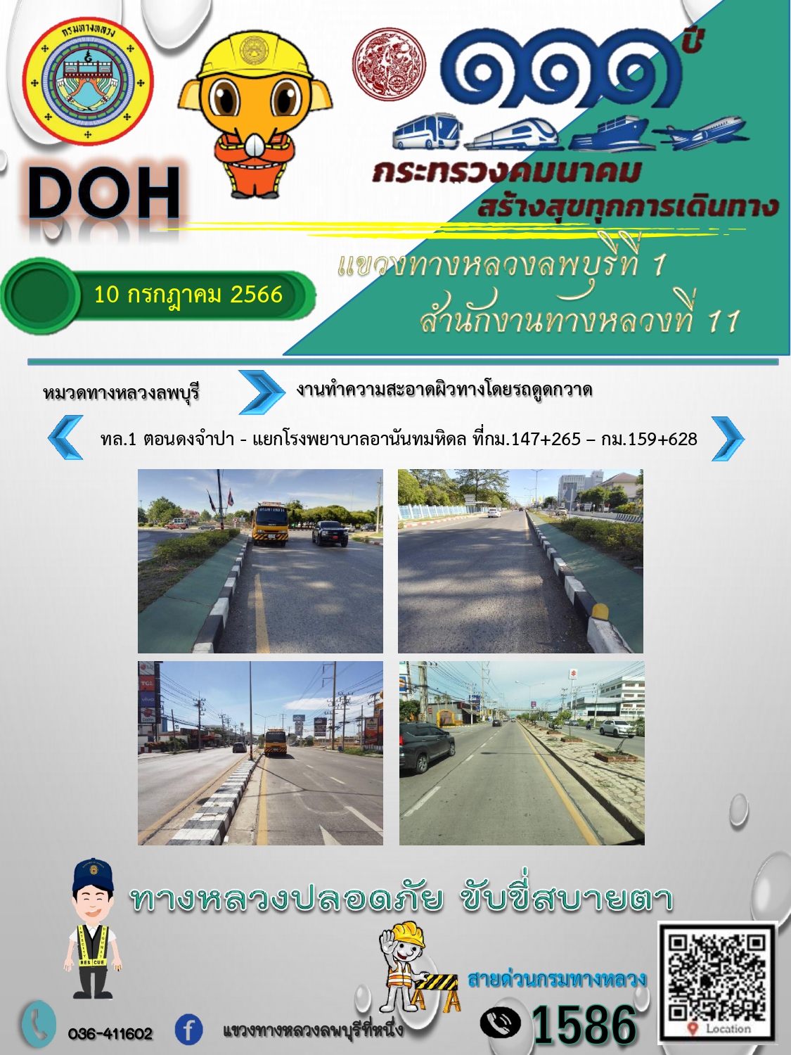 ทางหลวงปลอดภัยขับขี่สบายตา แขวงทางหลวงลพบุรีที่ 1 ประจำวันที่ 10 กรกฎาคม 2566