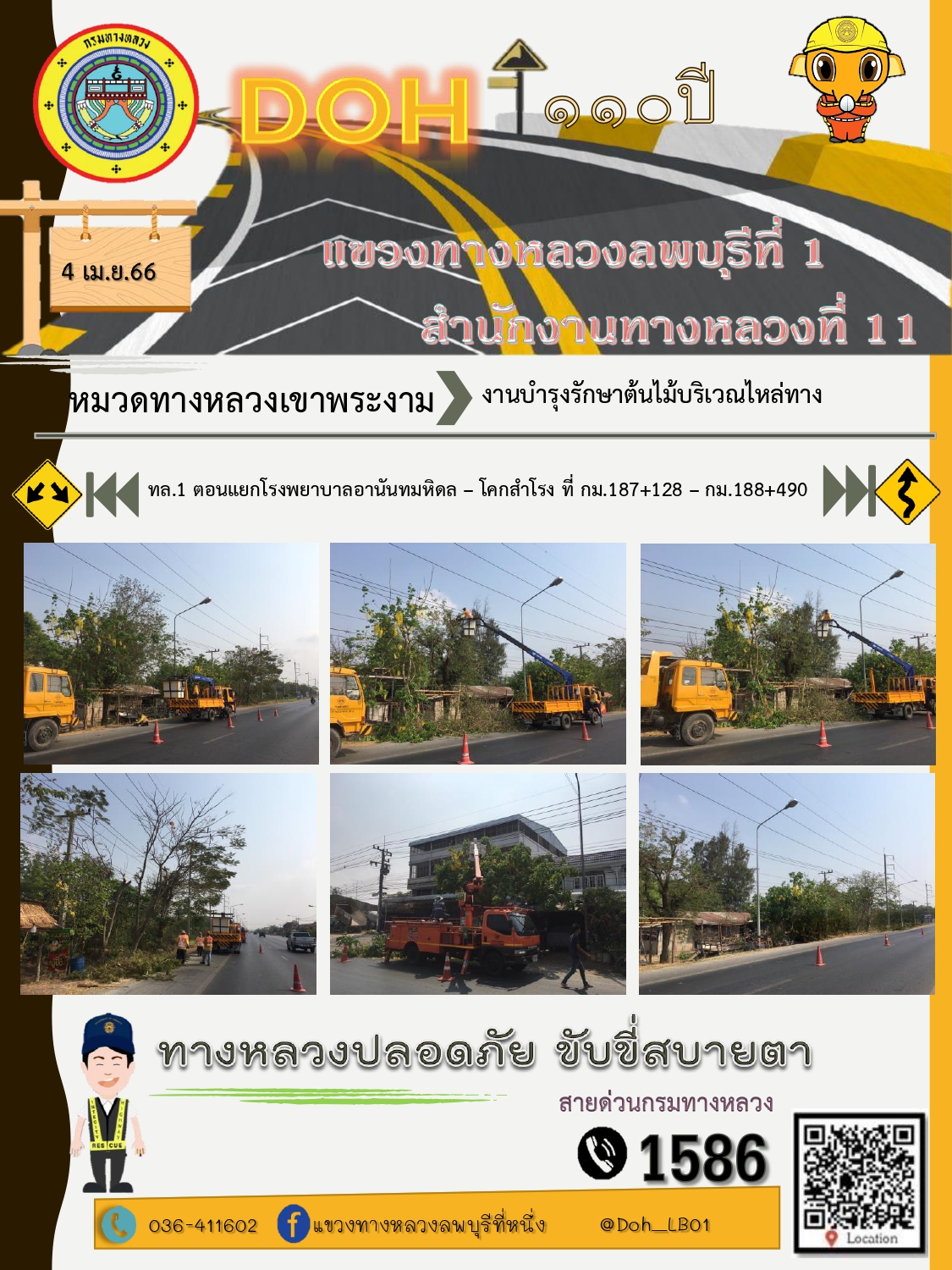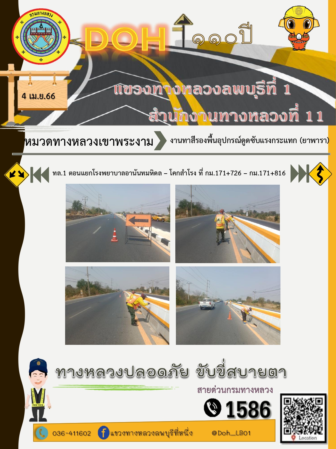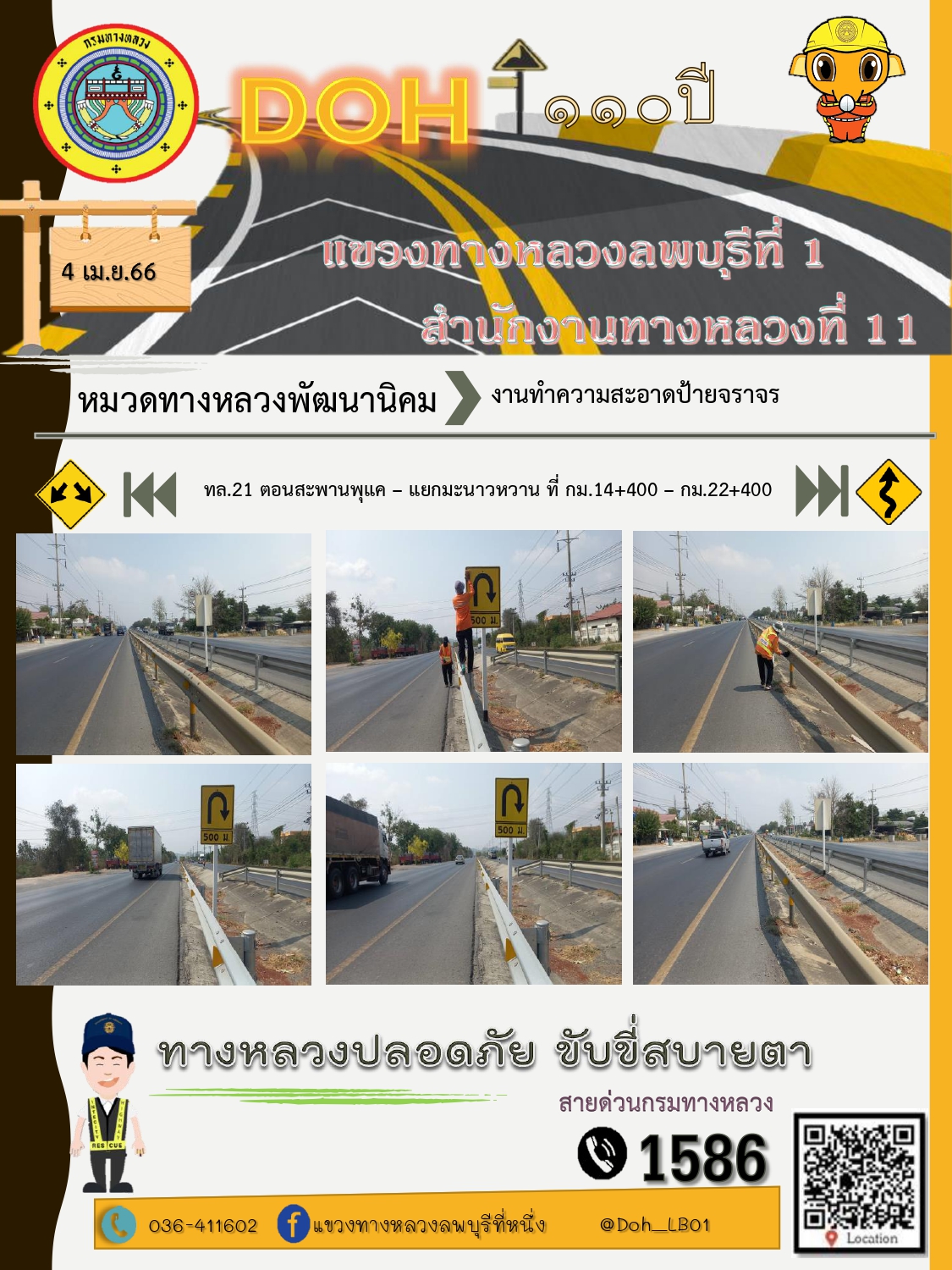 ทางหลวงปลอดภัยขับขี่สบายตา แขวงทางหลวงลพบุรีที่ 1 ประจำวันที่ 4 เมษายน 2566