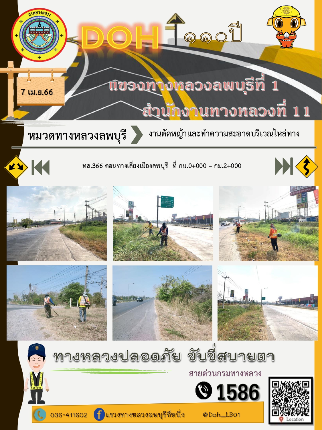ทางหลวงปลอดภัยขับขี่สบายตา แขวงทางหลวงลพบุรีที่ 1 ประจำวันที่ 7 เมษายน 2566