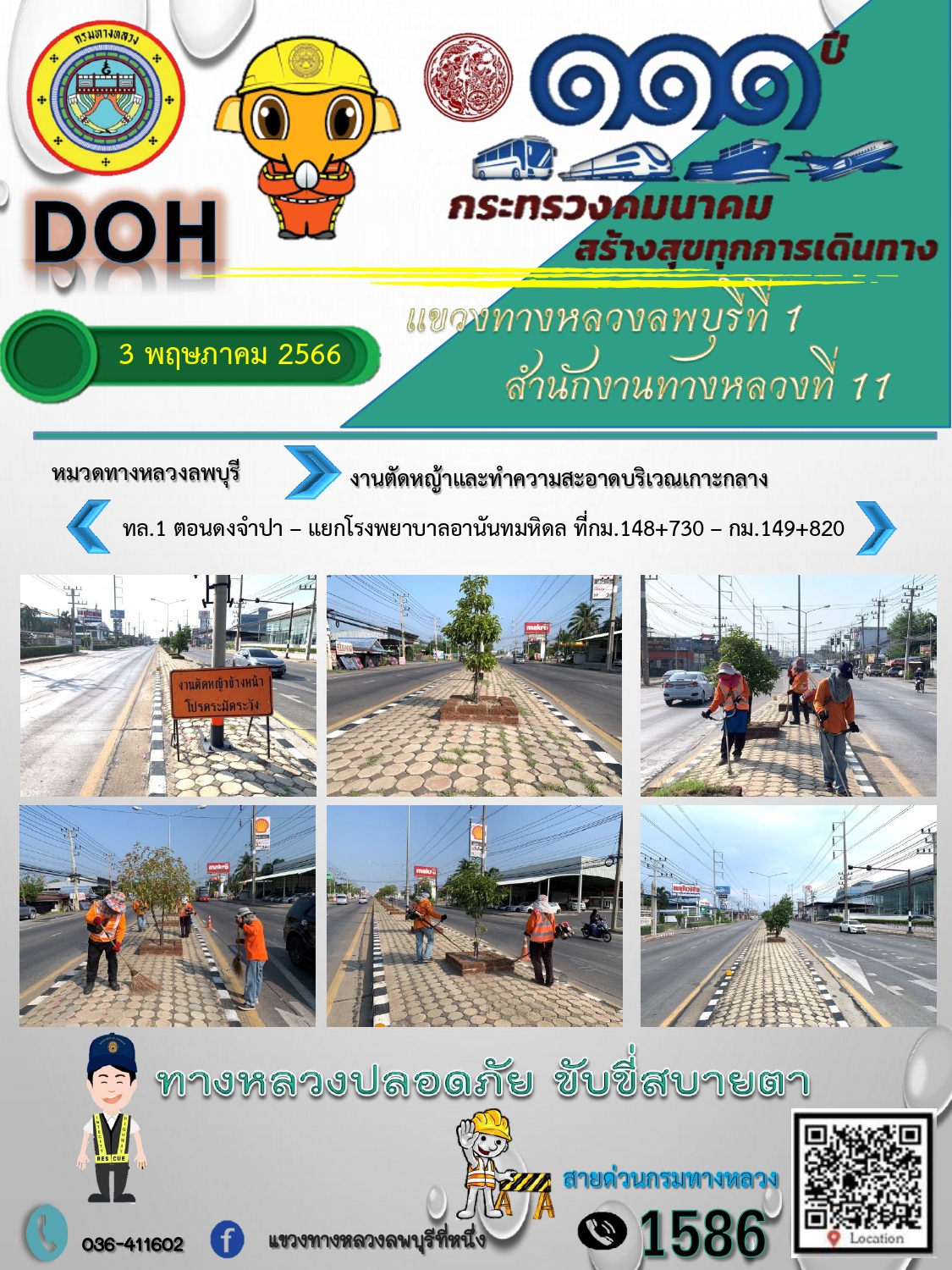 ทางหลวงปลอดภัยขับขี่สบายตา แขวงทางหลวงลพบุรีที่ 1 ประจำวันที่ 3 พฤษภาคม 2566