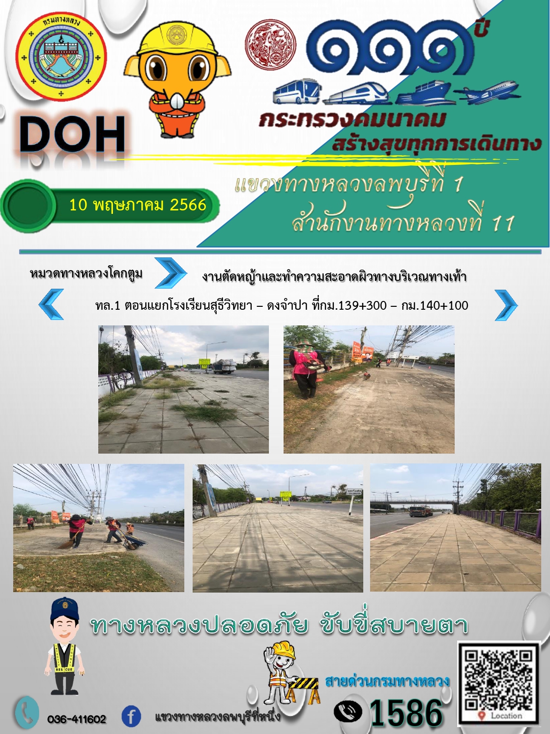 ทางหลวงปลอดภัยขับขี่สบายตา แขวงทางหลวงลพบุรีที่ 1 ประจำวันที่ 10 พฤษภาคม 2566
