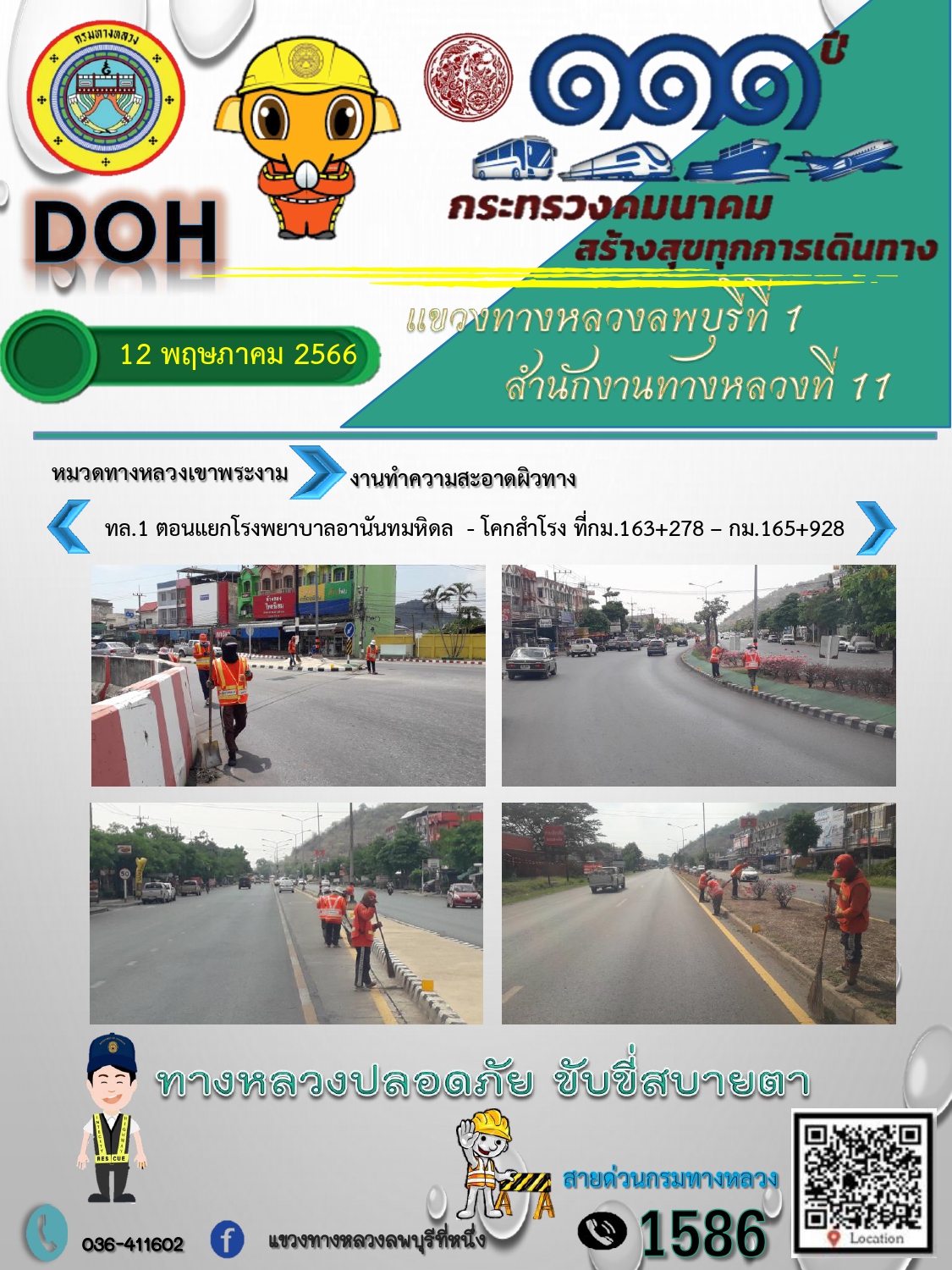 ทางหลวงปลอดภัยขับขี่สบายตา แขวงทางหลวงลพบุรีที่ 1 ประจำวันที่ 12 พฤษภาคม 2566