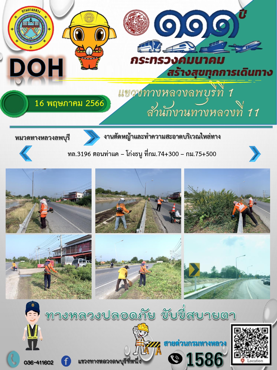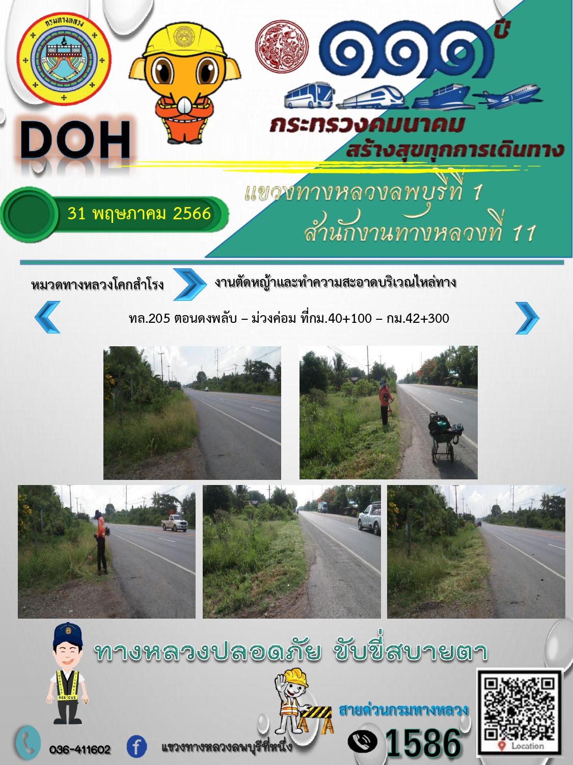 ทางหลวงปลอดภัยขับขี่สบายตา แขวงทางหลวงลพบุรีที่ 1 ประจำวันที่ 31 พฤษภาคม 2566